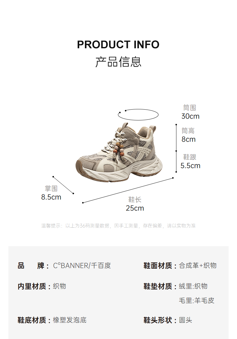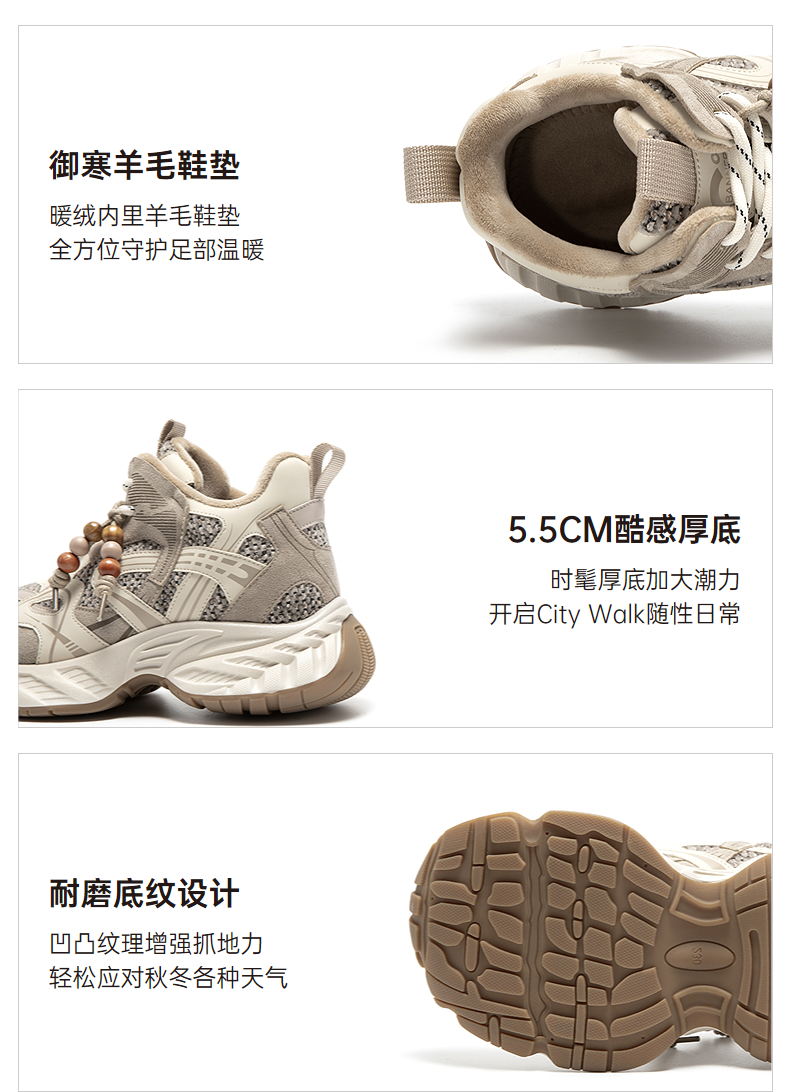 千百度厚底耐磨老爹鞋女增高加绒保暖时尚运动休闲鞋A25650829