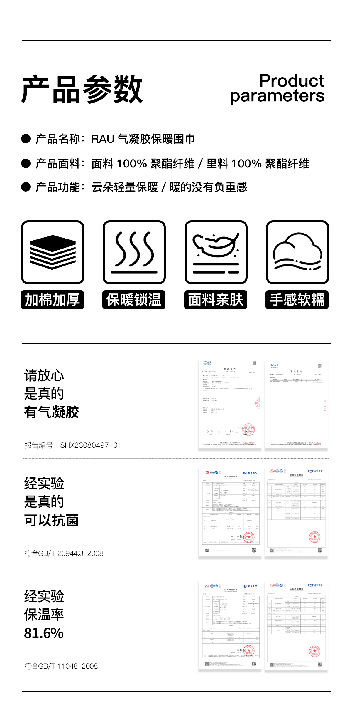暖的无负担!RAU气凝胶保暖围巾 男女通用 保暖围脖