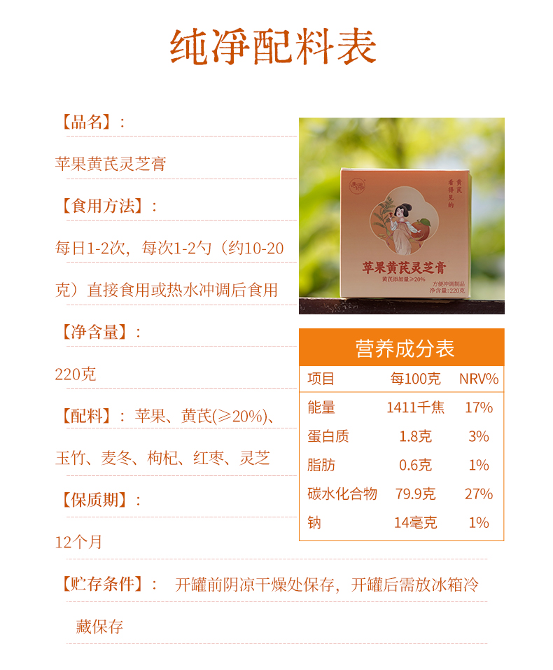 苹果黄芪灵芝膏220g