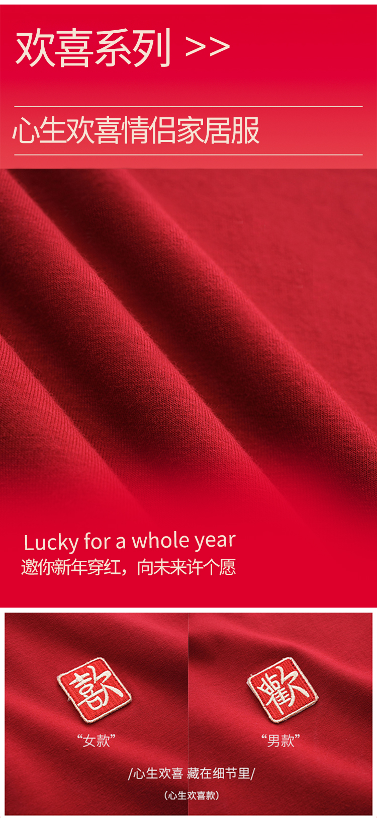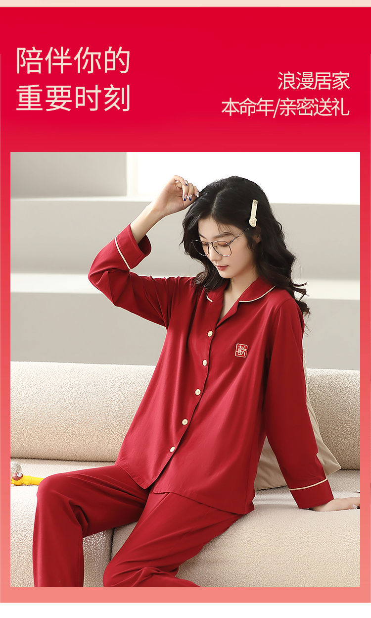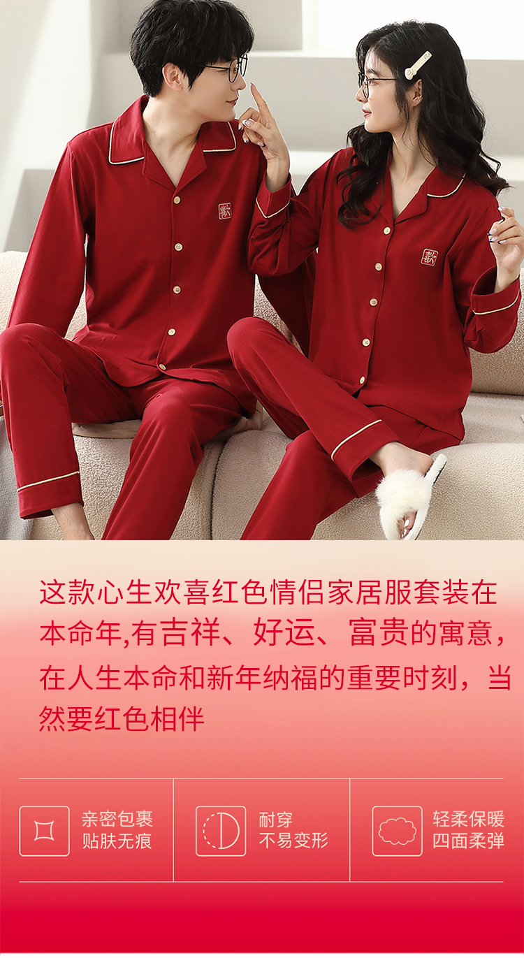 【利蜂心生欢喜红色情侣家居服套装】邀你新年穿红,向未来许个愿