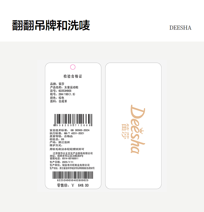 笛莎Deesha 女童童鞋2025秋新款运动鞋