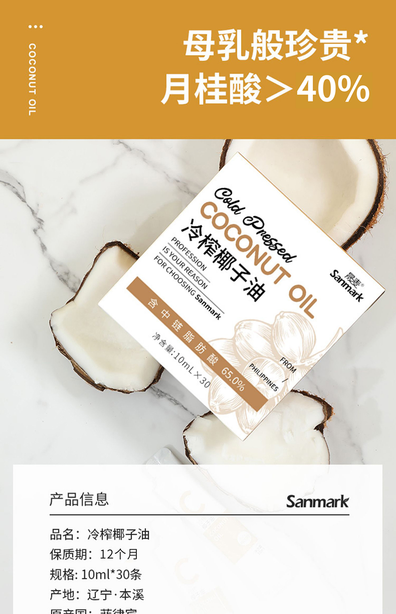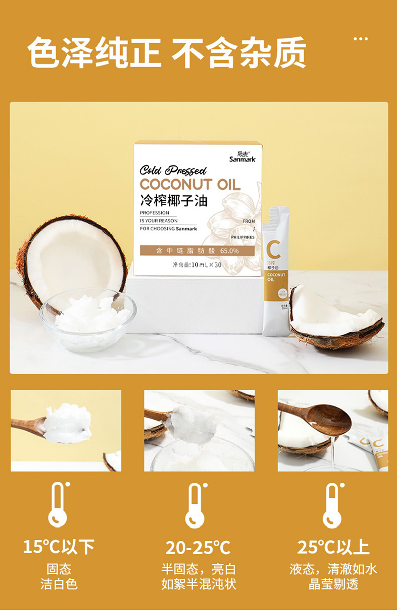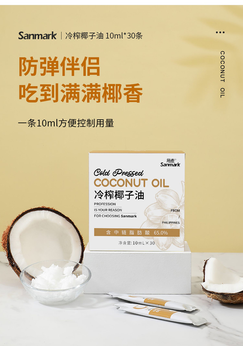 低温冷榨椰子油 可吃可护肤 便利包装10ml*30条