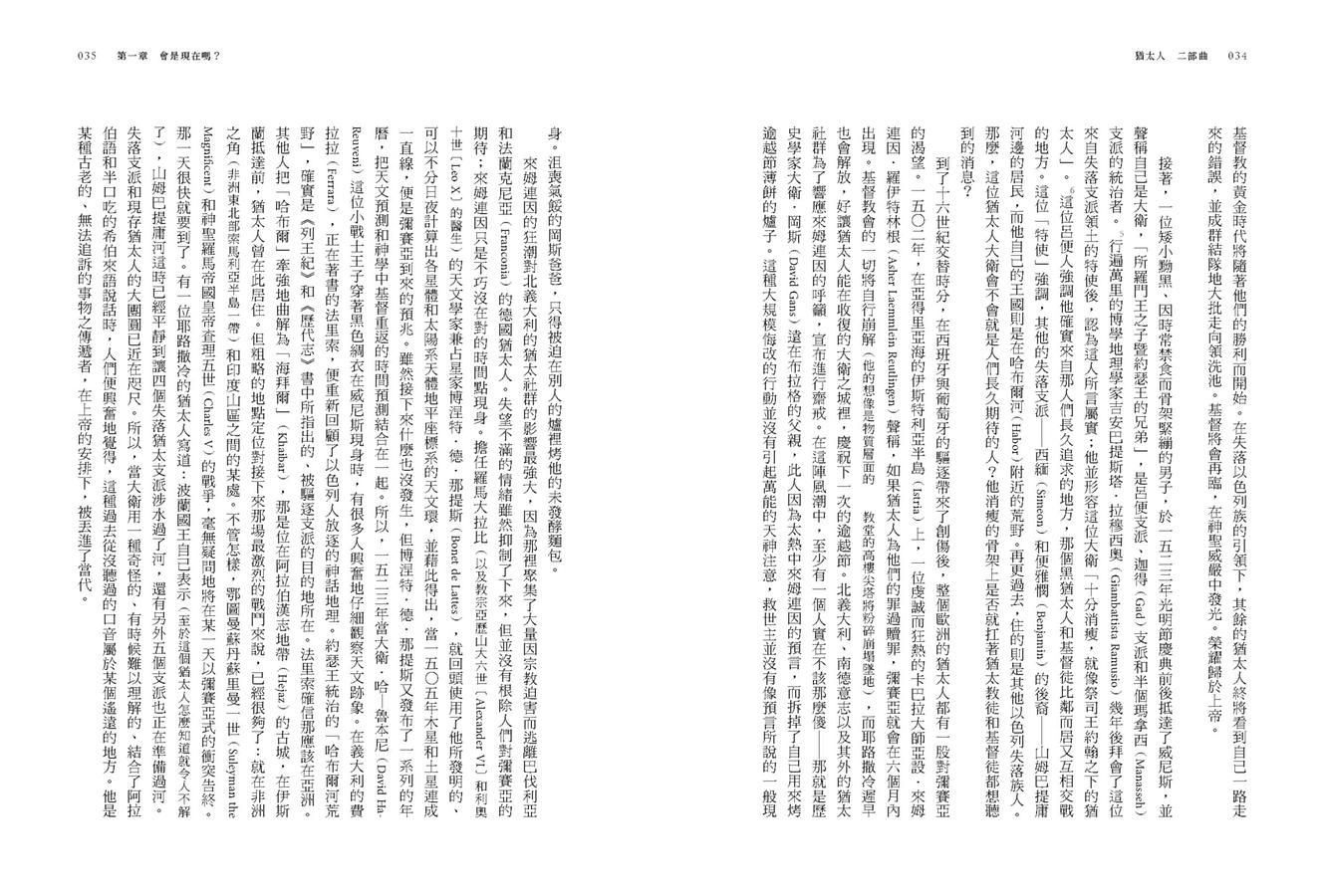 《猶太人》系列,是英國知名歷史學者西蒙・夏瑪醞釀了幾乎一輩子,出自靈魂的書寫。在第二部,他講述了晚近五百年間猶太人為保有文化、身分,如何在不同國家賣力爭取權益,範圍涵蓋了葡萄牙、義大利、法國、英國、俄羅斯,遠到南美洲、美國、印度、西非、阿拉伯半島,並鮮活描繪出各地的猶太人面貌,有穿梭於權貴間的商人世家,有威尼斯貧民窟的詩人、中國明朝的猶太教徒、英國的拳擊手、德國的歌劇作家等等,跨越數百年、數個階級。