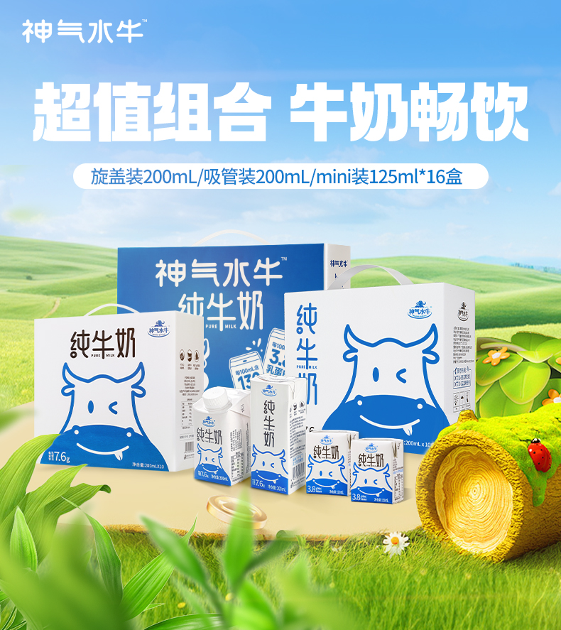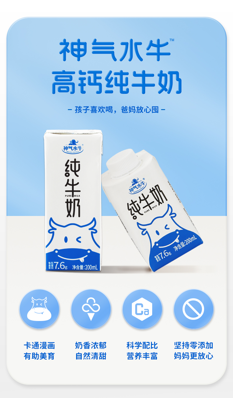 ⁵69.9元2箱旋转盖【神气牛-200ml】纯水牛奶+纯牛奶 香醇微甜不腻 YY05-QTT-HZLZ