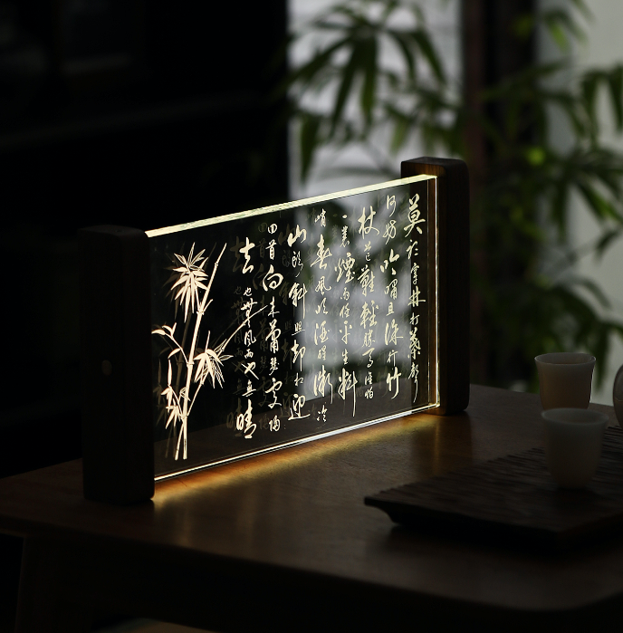 新中式两用屏风发光茶盘 , 会发光的茶盘!暖灯漫染,雅致温馨,美好寓意新年礼! 马到成功/竹报平安