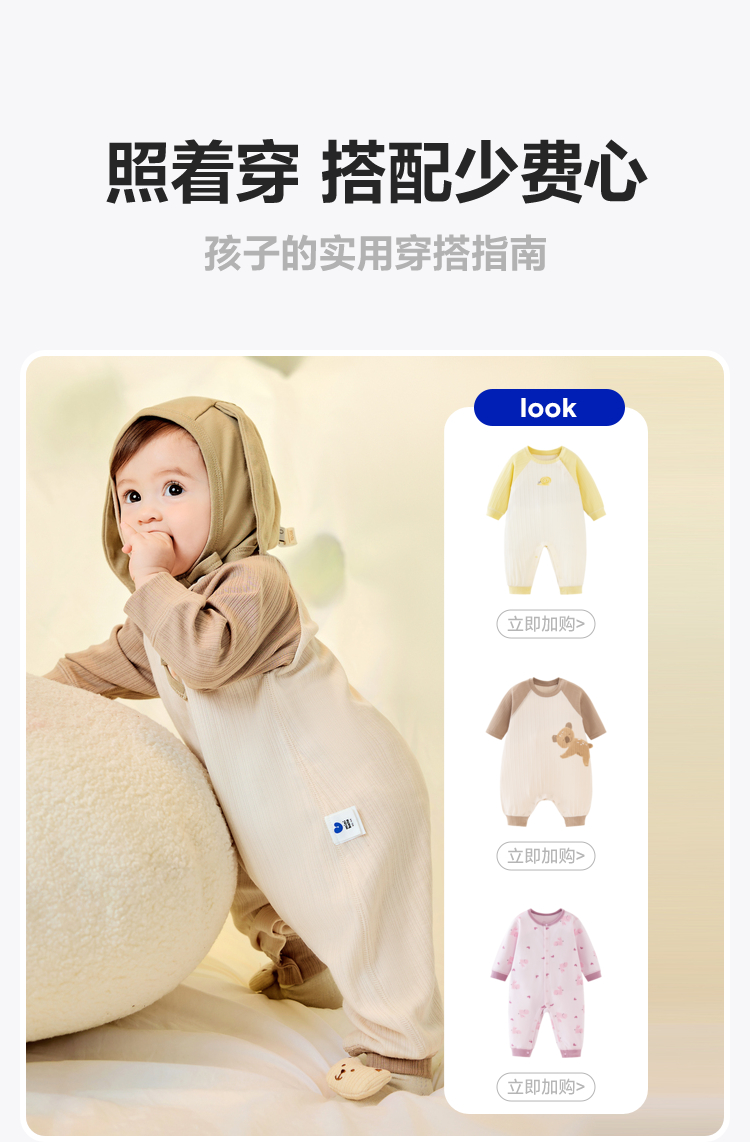 【植物芯无骨弹】迷你巴拉秋款柔感家居连体衣宝宝插肩袖爬服