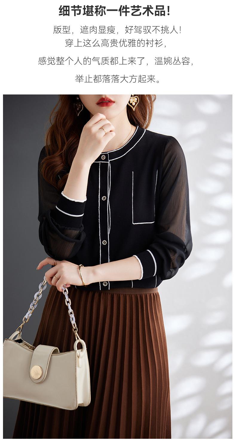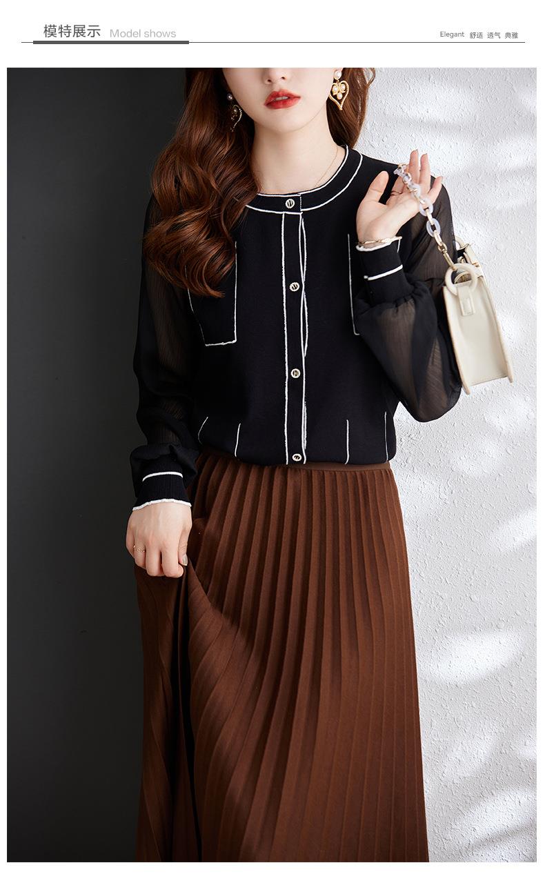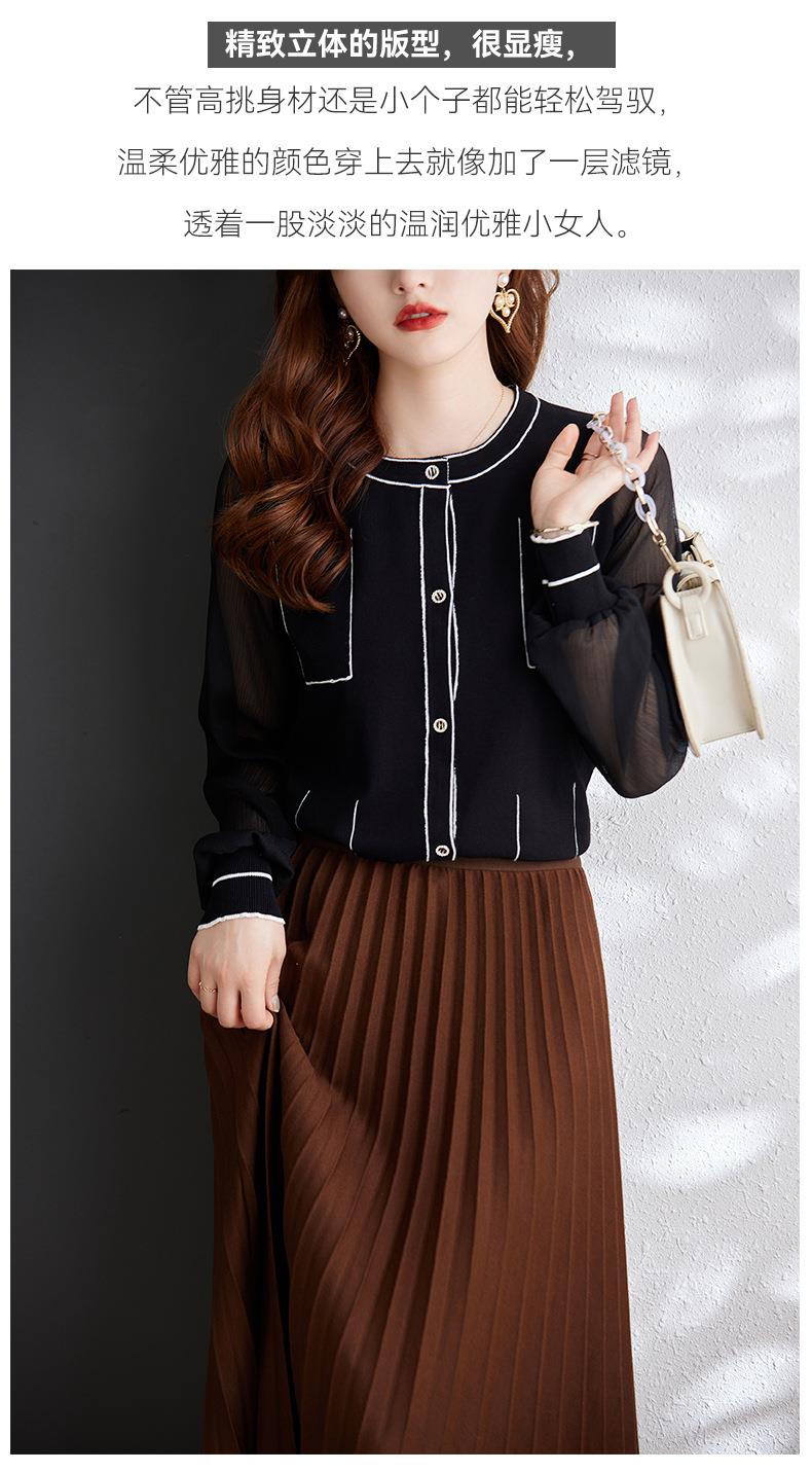 娜璐多 拼接撞色女式针织衫小香风气质时尚上衣女2023初秋新款设计感百搭