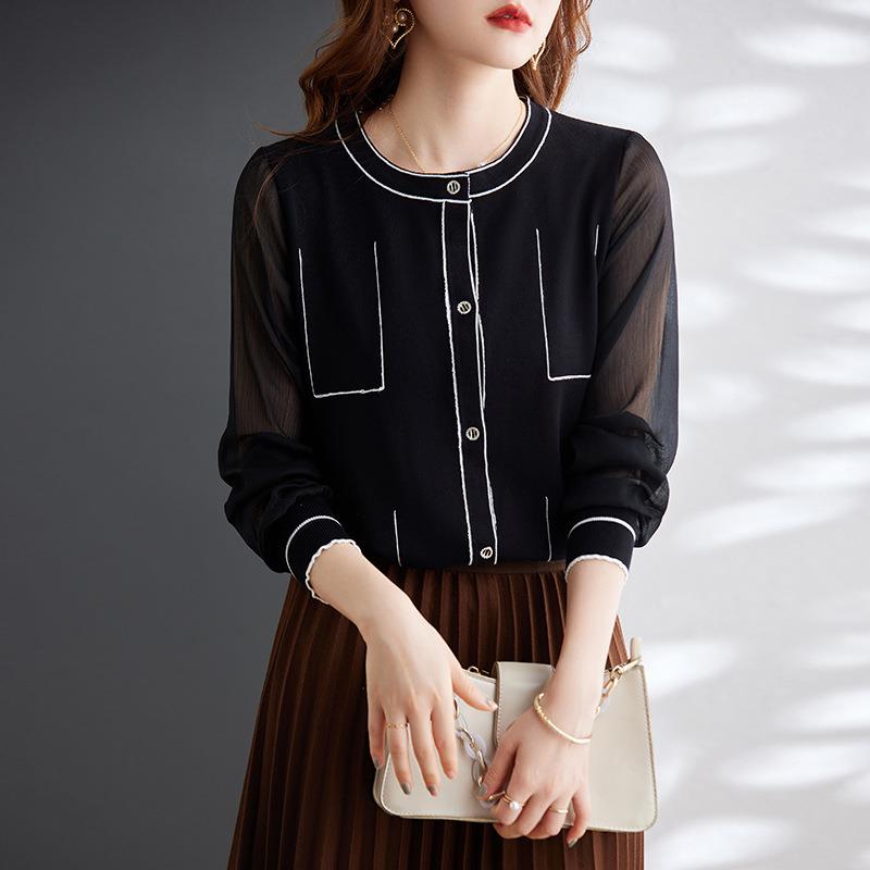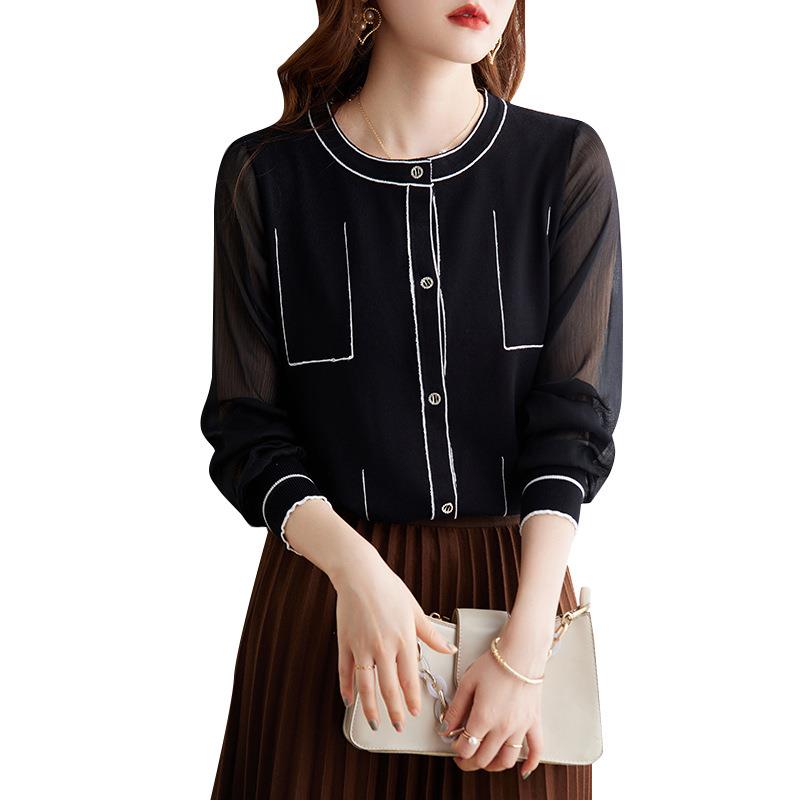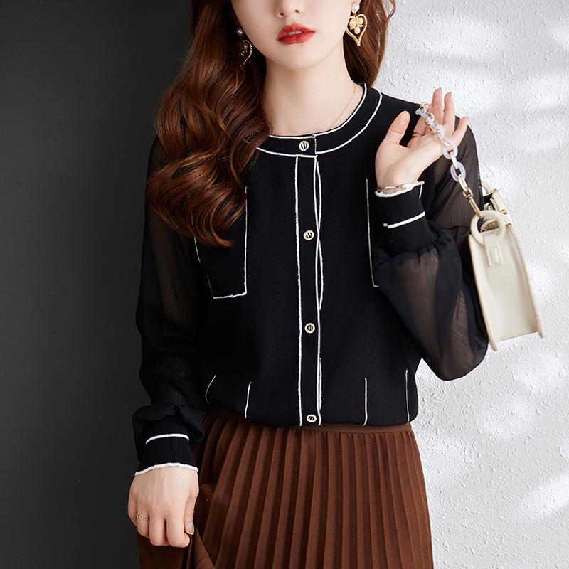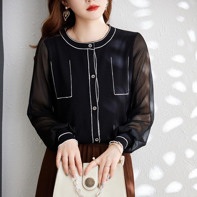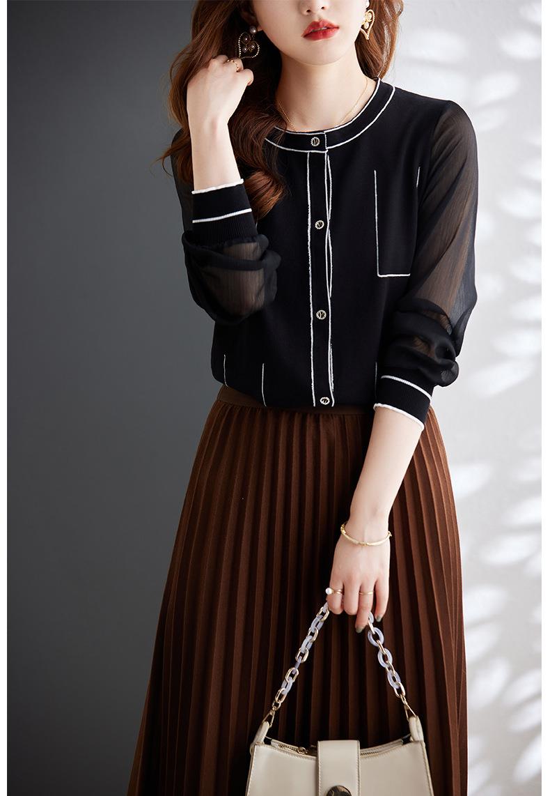 娜璐多 拼接撞色女式针织衫小香风气质时尚上衣女2023初秋新款设计感百搭