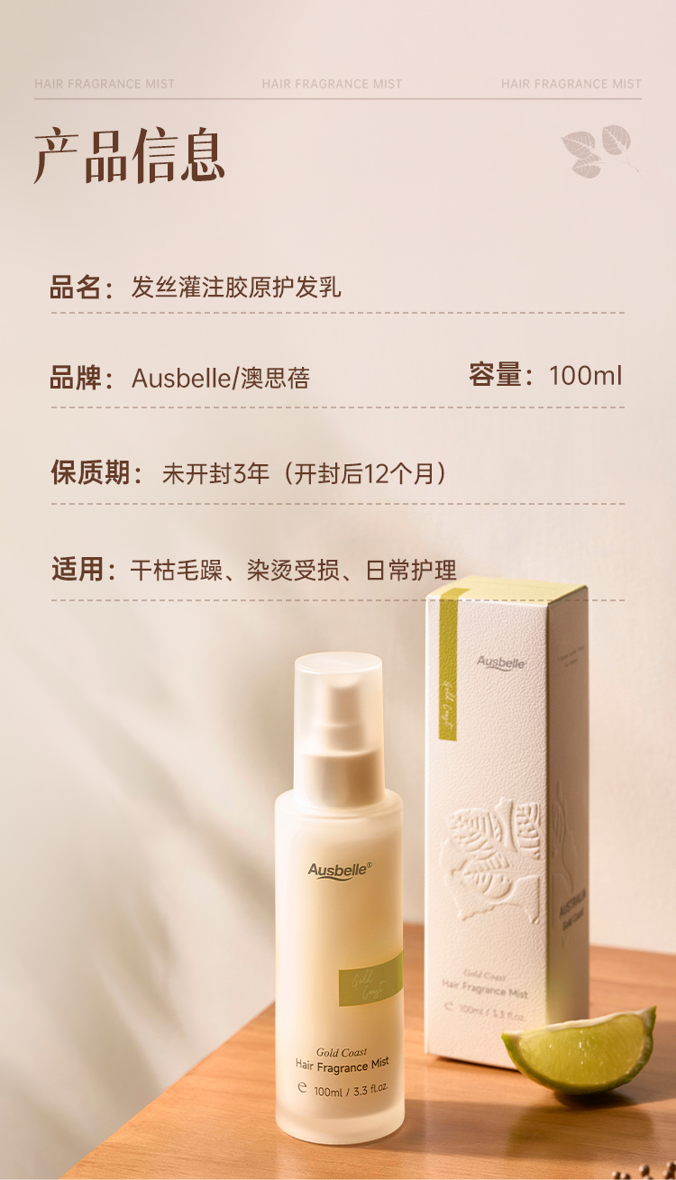 【跨境】Ausbelle澳思蓓发丝灌注胶原护发乳100ml/瓶