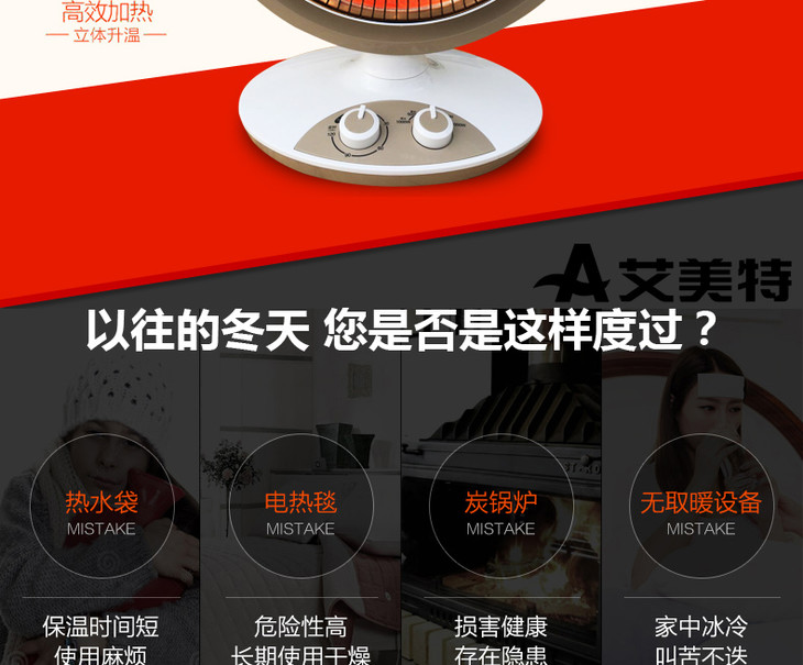 艾美特(506762 )(airmate) HF10078T 1000W 机械式 电暖器 快速升温 白色