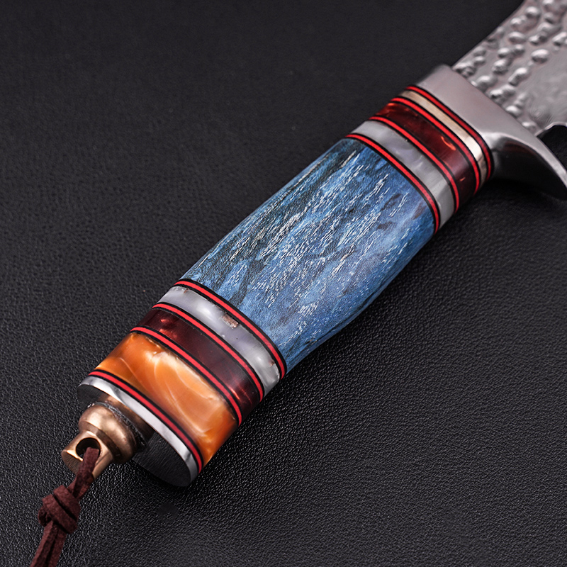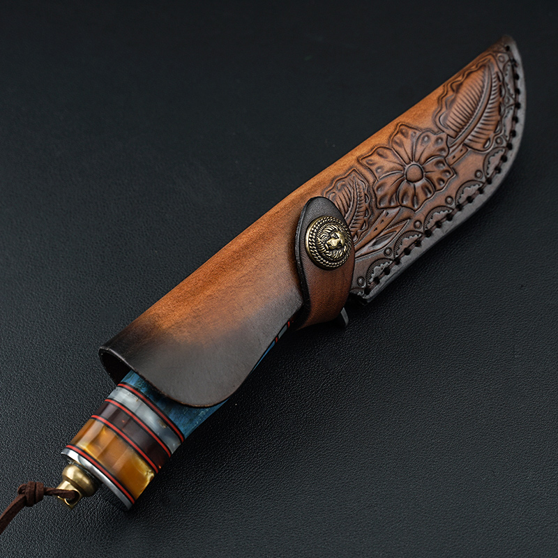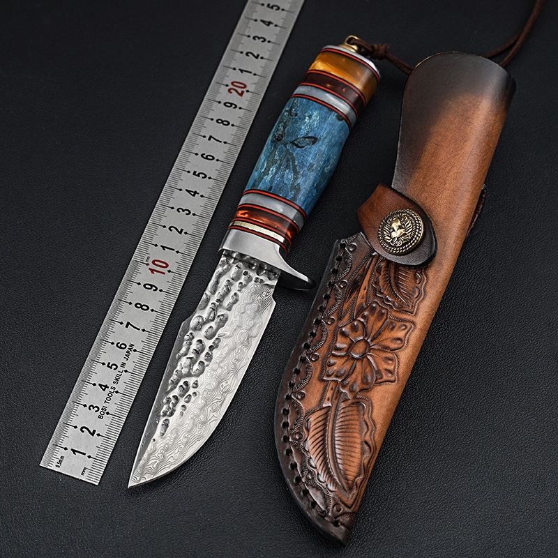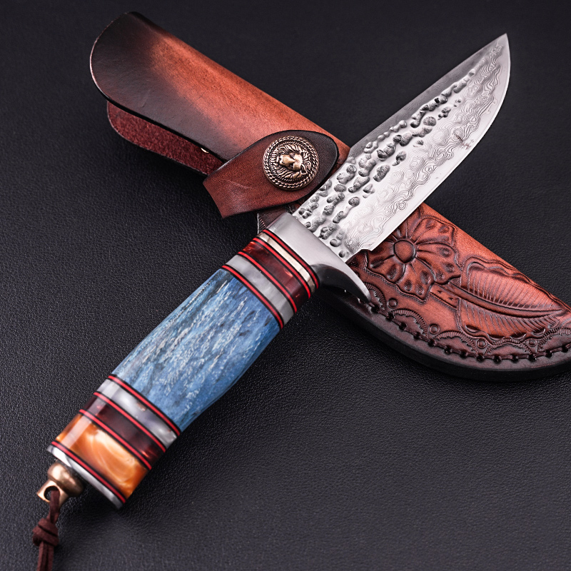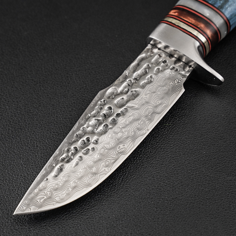 非洲野狼大马士革手工刀收藏刀固化稳定木手柄户外战术直刀