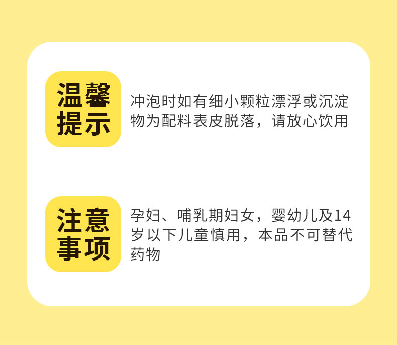 【温馨提示】冲泡时如有细小漂浮或沉淀物为配料表皮脱落所致,请放饮用