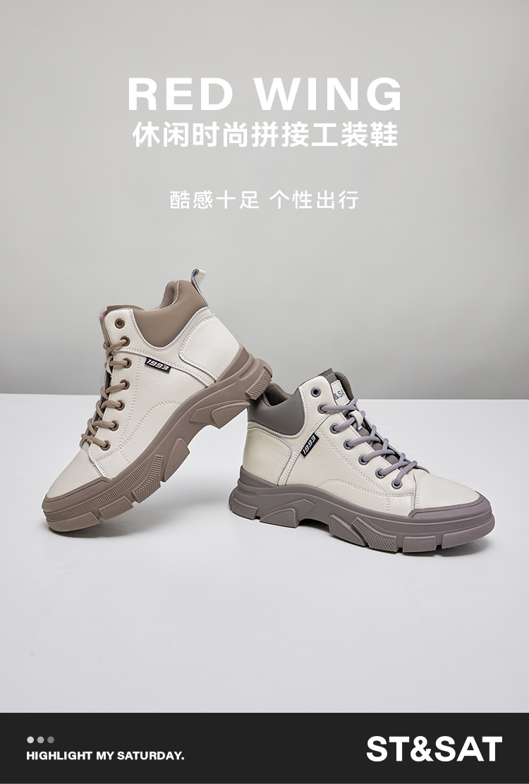 星期六潮酷厚底拼色短筒马丁靴SS34116281