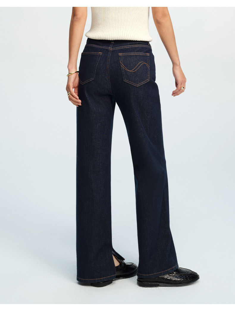 【威化裤】simplepieces春新款SPS牛仔女显瘦撞色线阔腿拖地裤