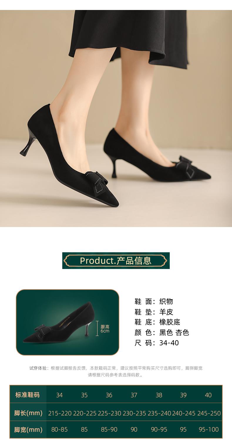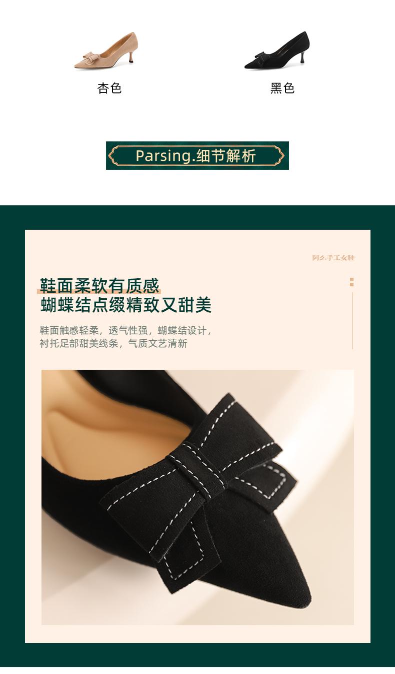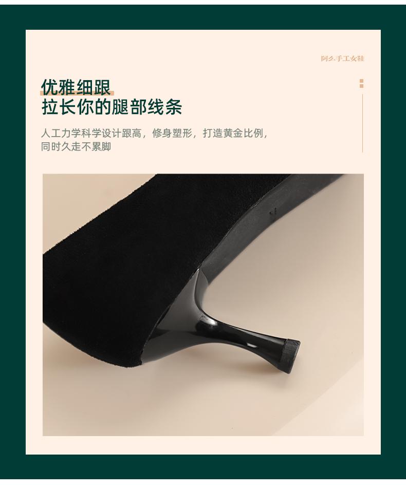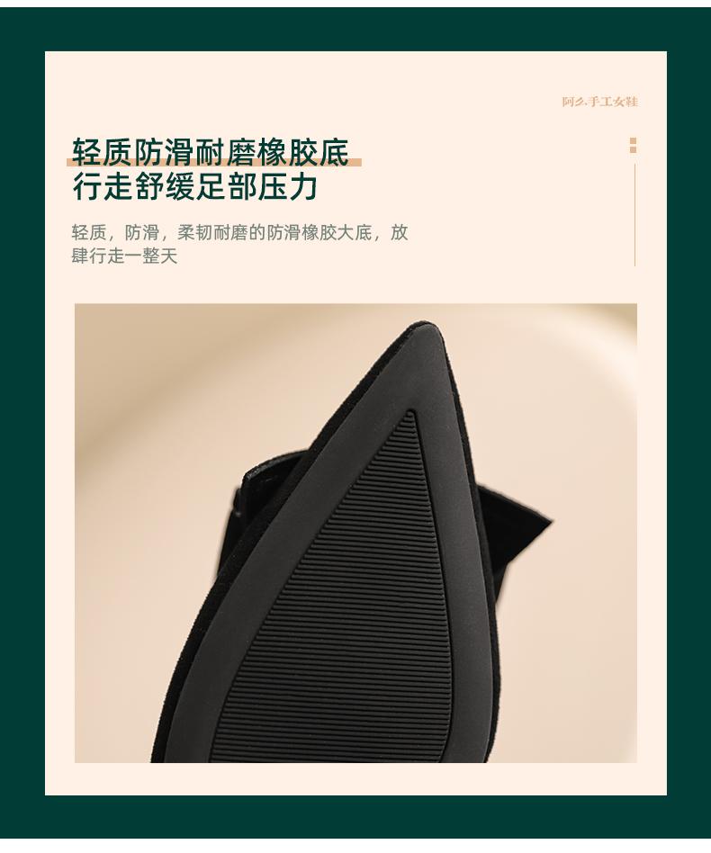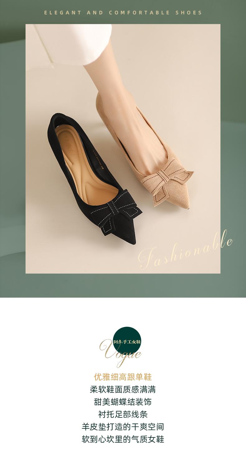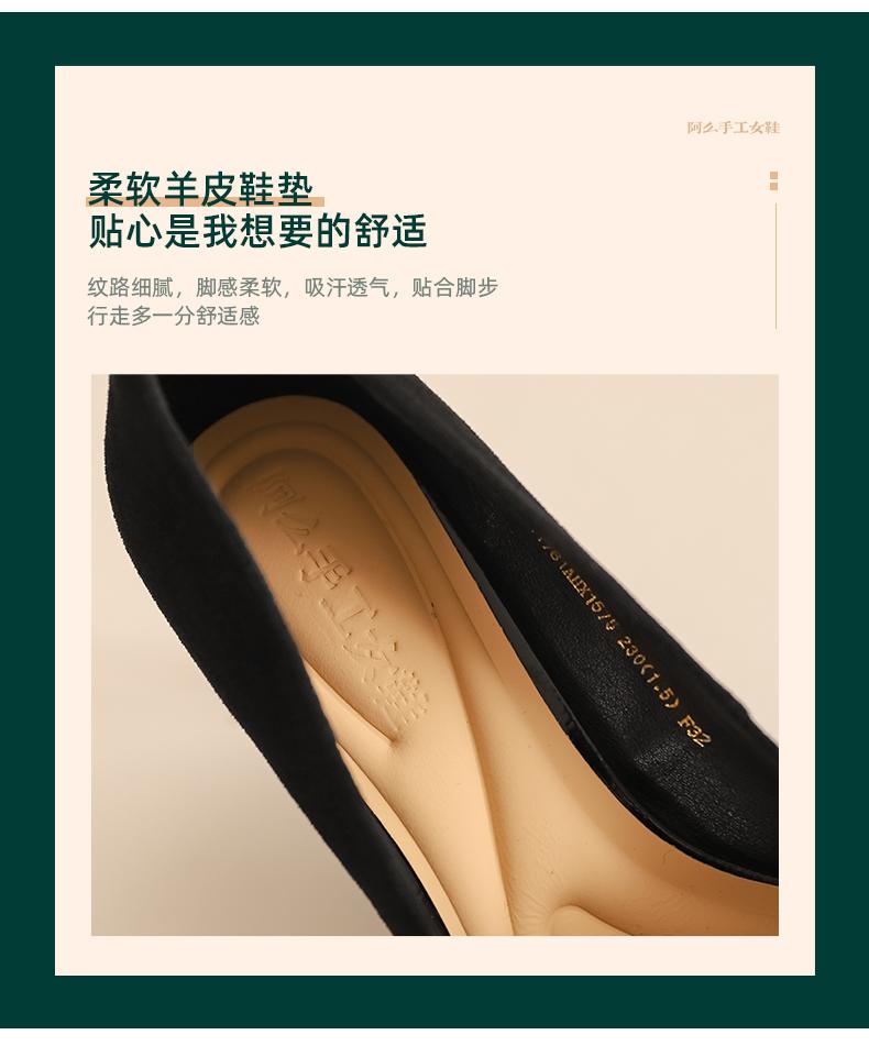 阿么手工女鞋绒面小香风细跟单鞋2025新款百搭气质高跟鞋软底6CM