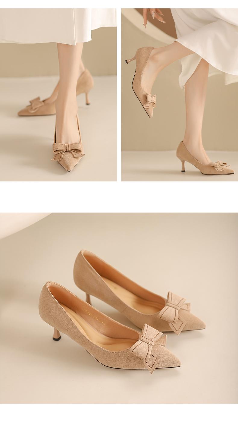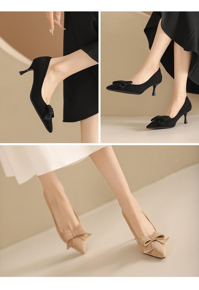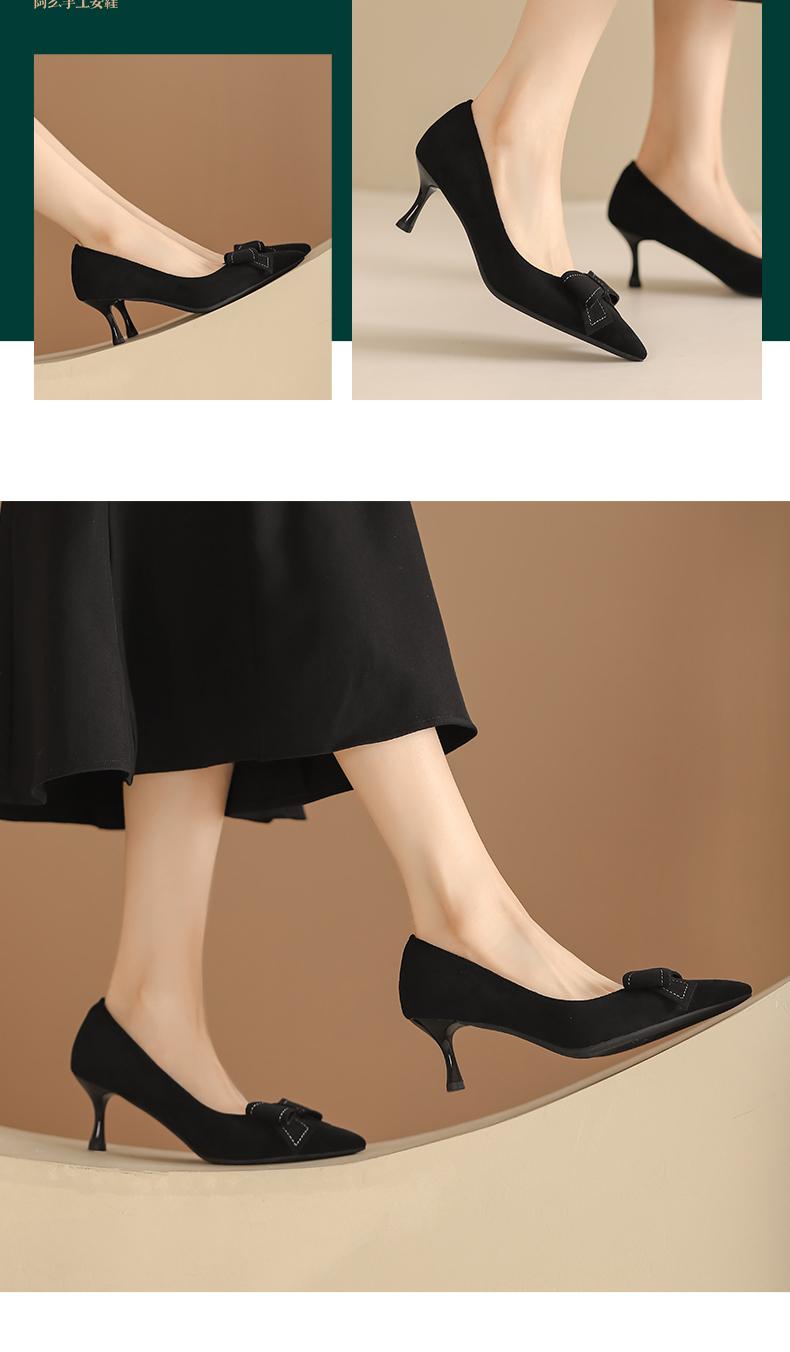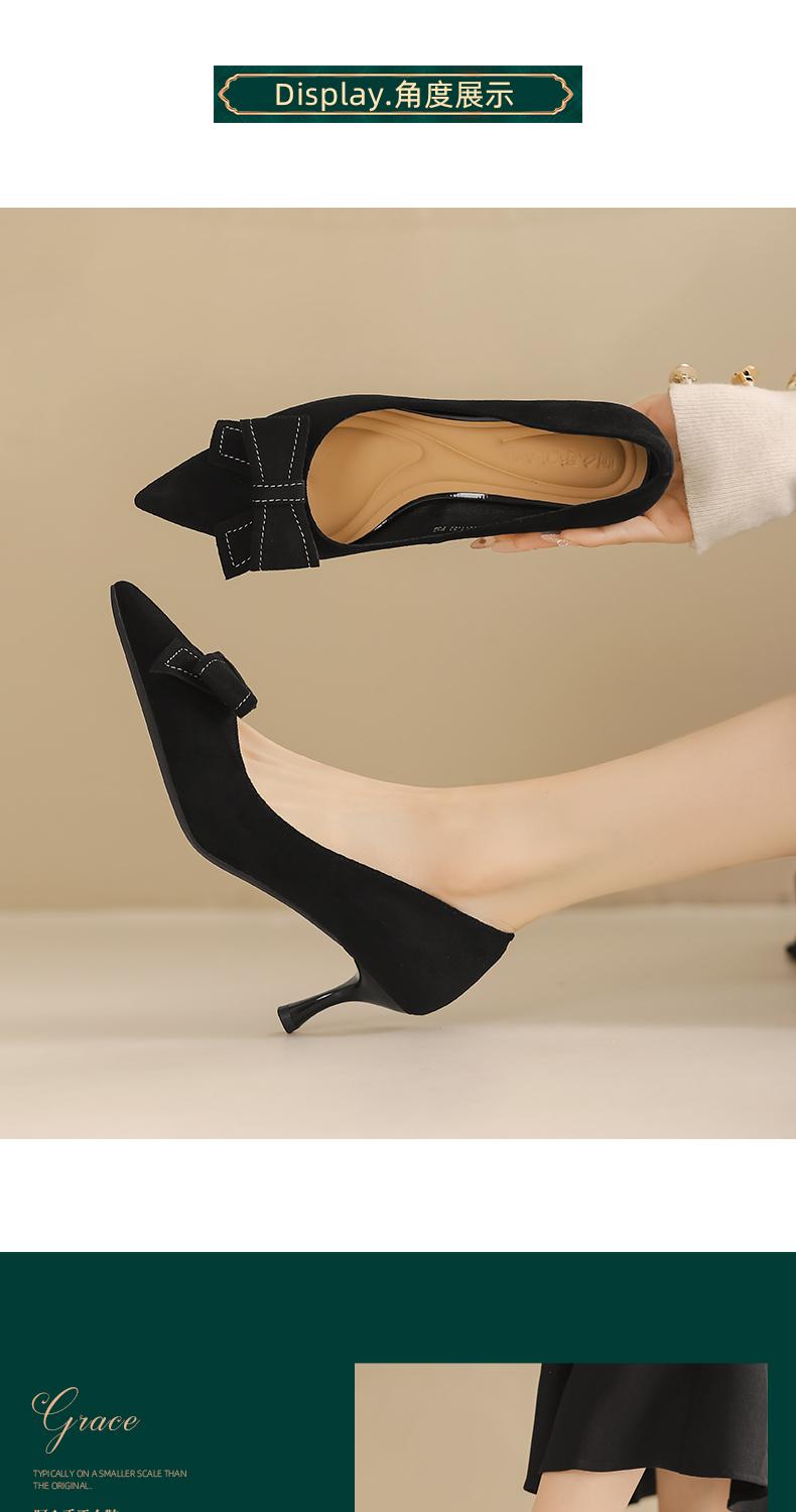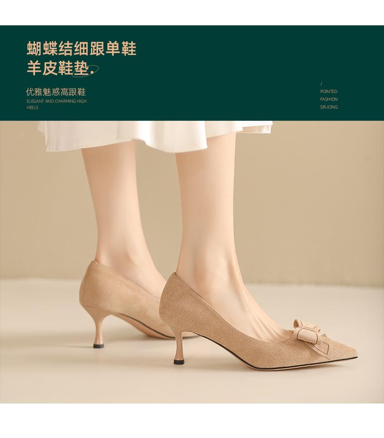 阿么手工女鞋绒面小香风细跟单鞋2025新款百搭气质高跟鞋软底6CM