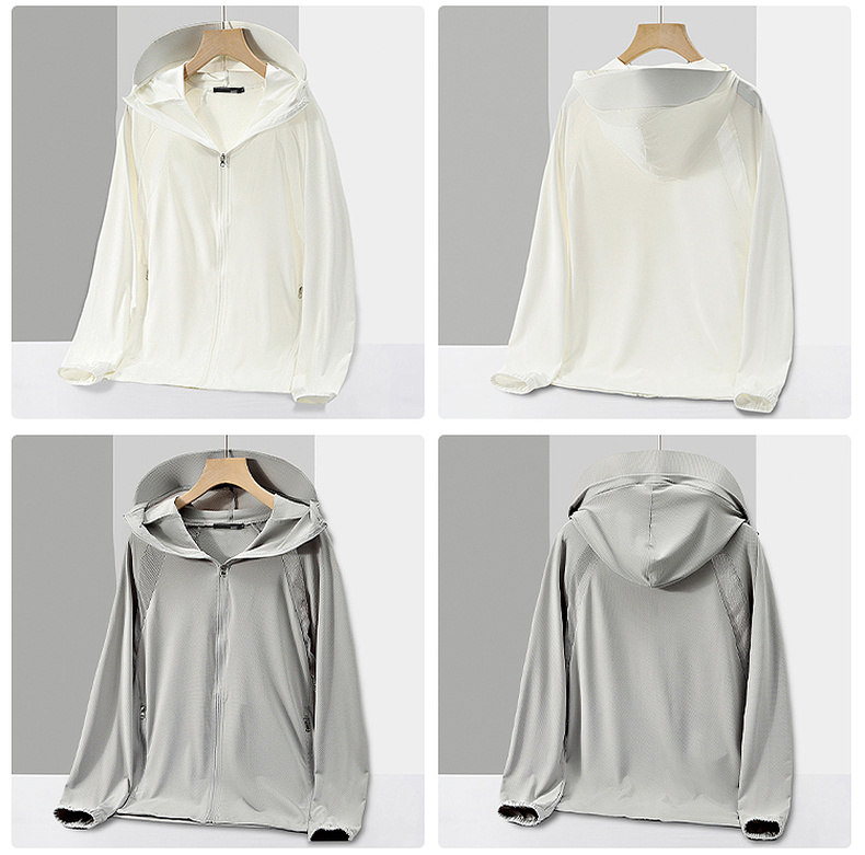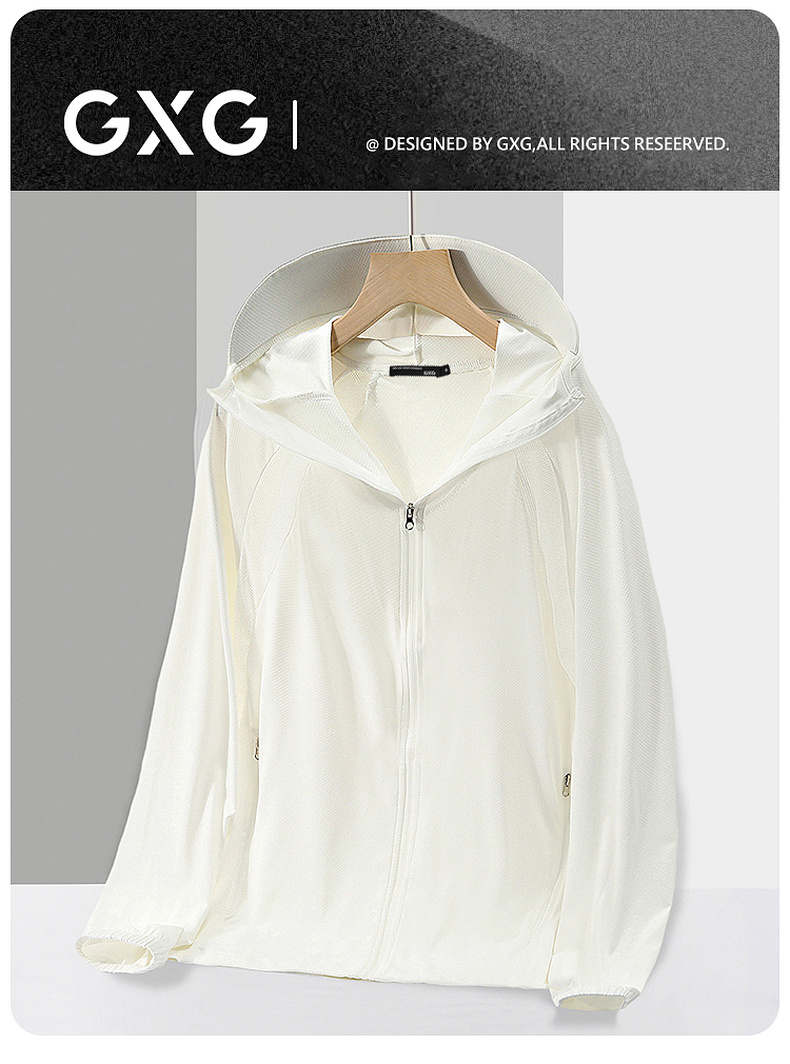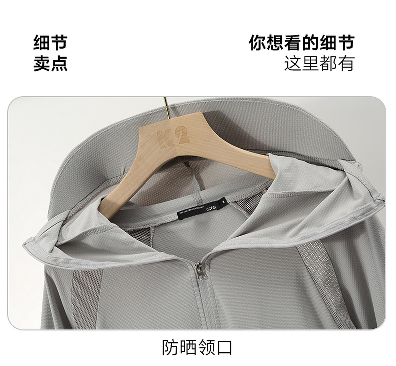 GXG男装25夏季时尚拼接设计拉链口袋舒适柔软连帽防晒服K&C