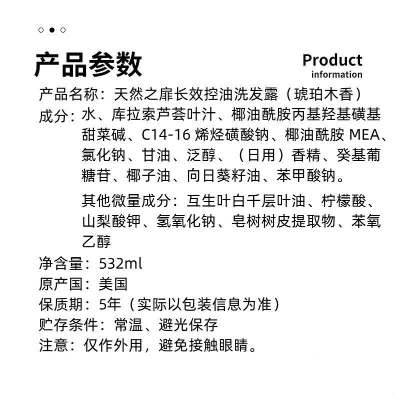 美国进口天然之扉长效控油洗发露532ml【琥珀木香】(满一件赠同品牌长效控油洗发露50ml)