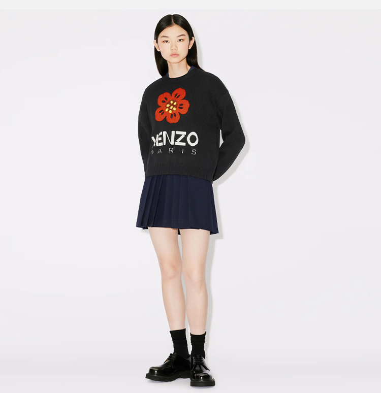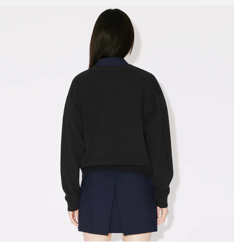 KENZO 高田贤三 女士大海棠花徽标提花羊毛针织衫 黑色 FD62 PU430 3LD 99J