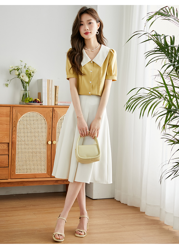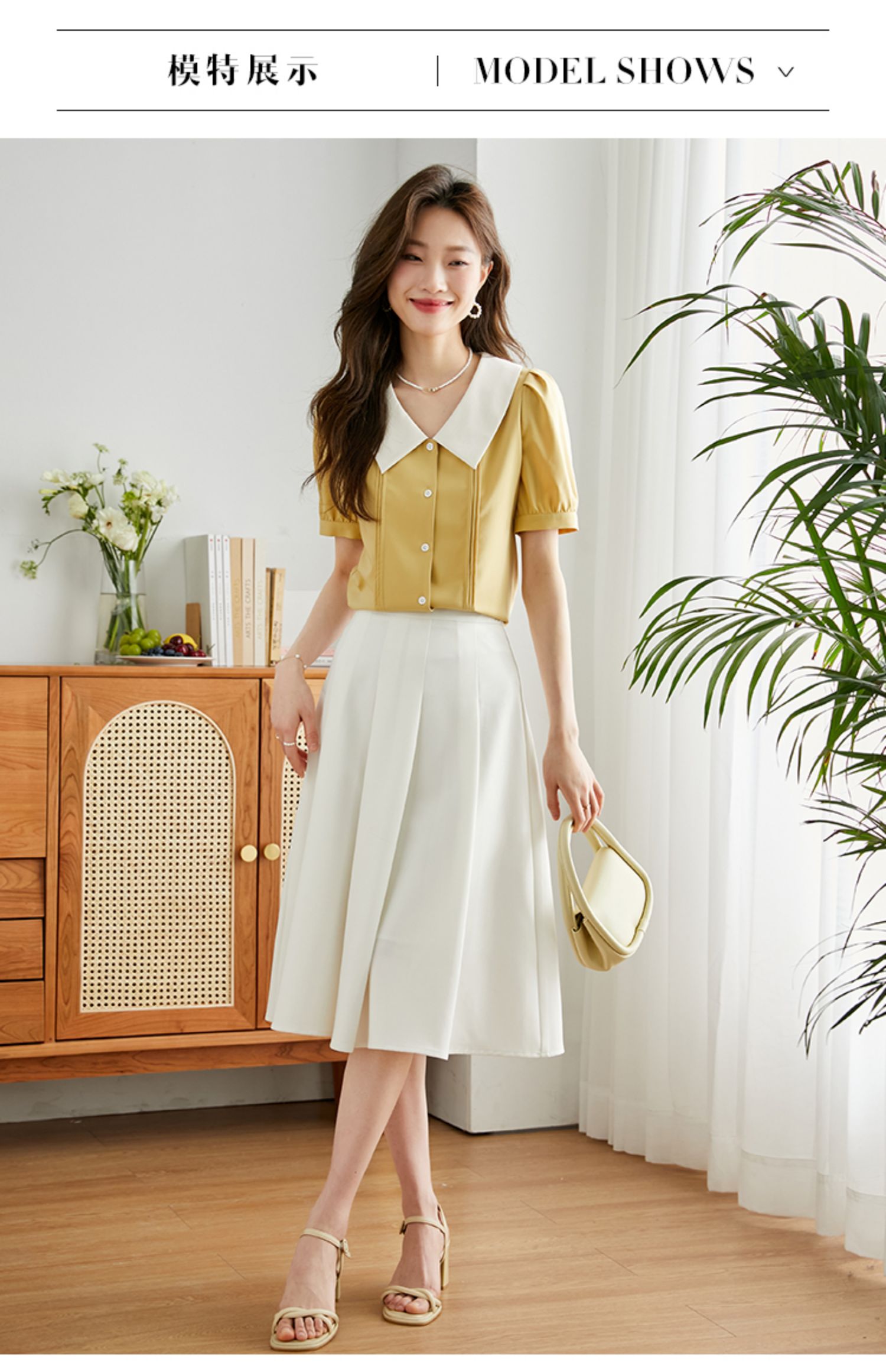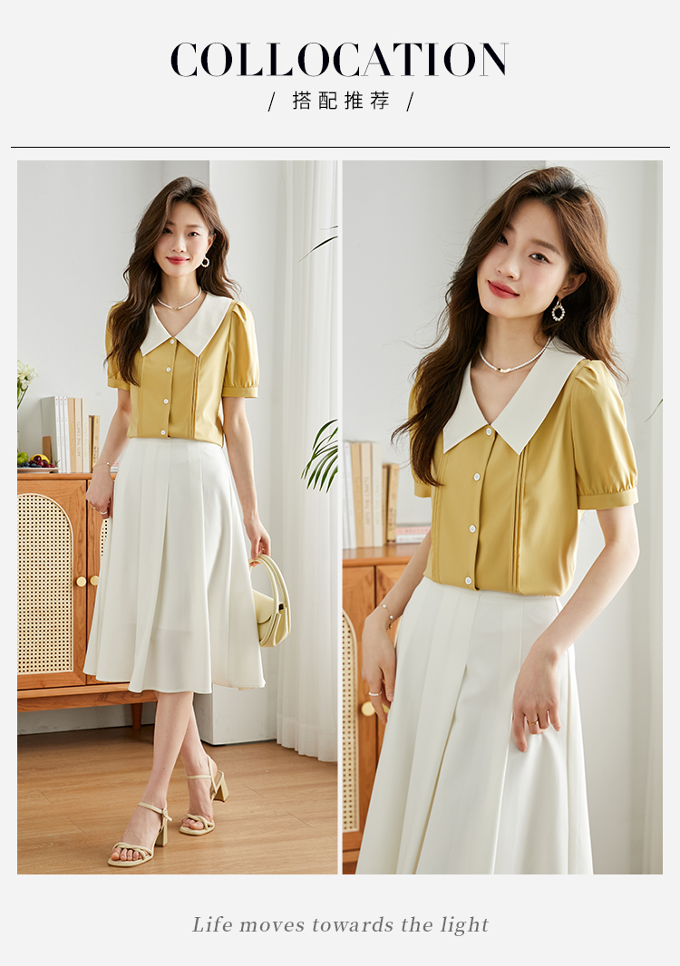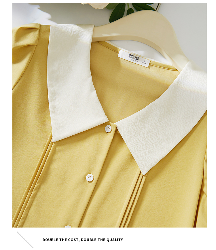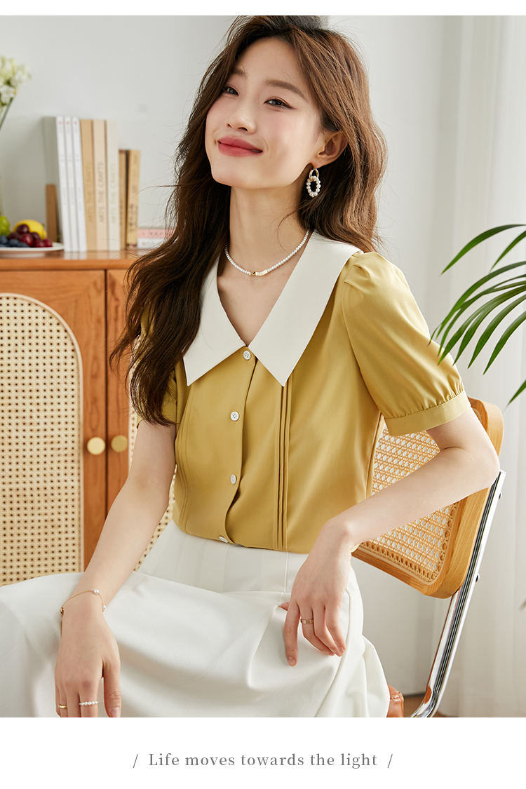【专属特价】熙世界法式撞色娃娃领衬衫女夏季2025年新款文艺风别致泡泡袖上衣