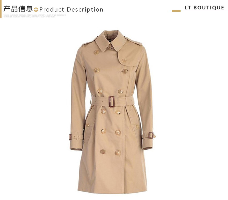 【二】BURBERRY 巴宝莉 女士肯辛顿版型 – 中长款 Heritage Trench 束腰风衣 卡其色 4073373 70500