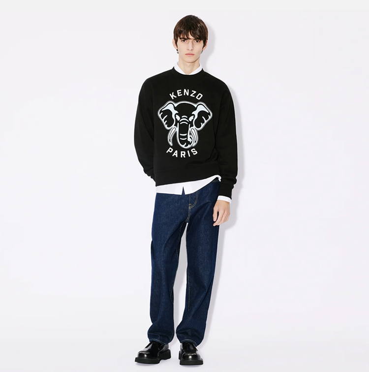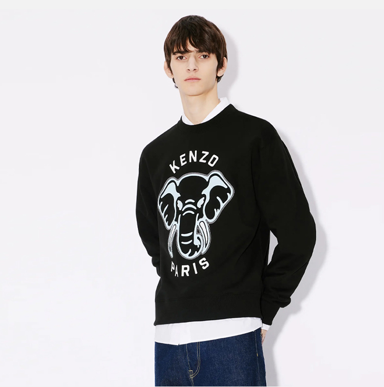 KENZO 高田贤三 男士大象”徽标刺绣运动卫衣 黑色 FE55 SW188 4MF 99J