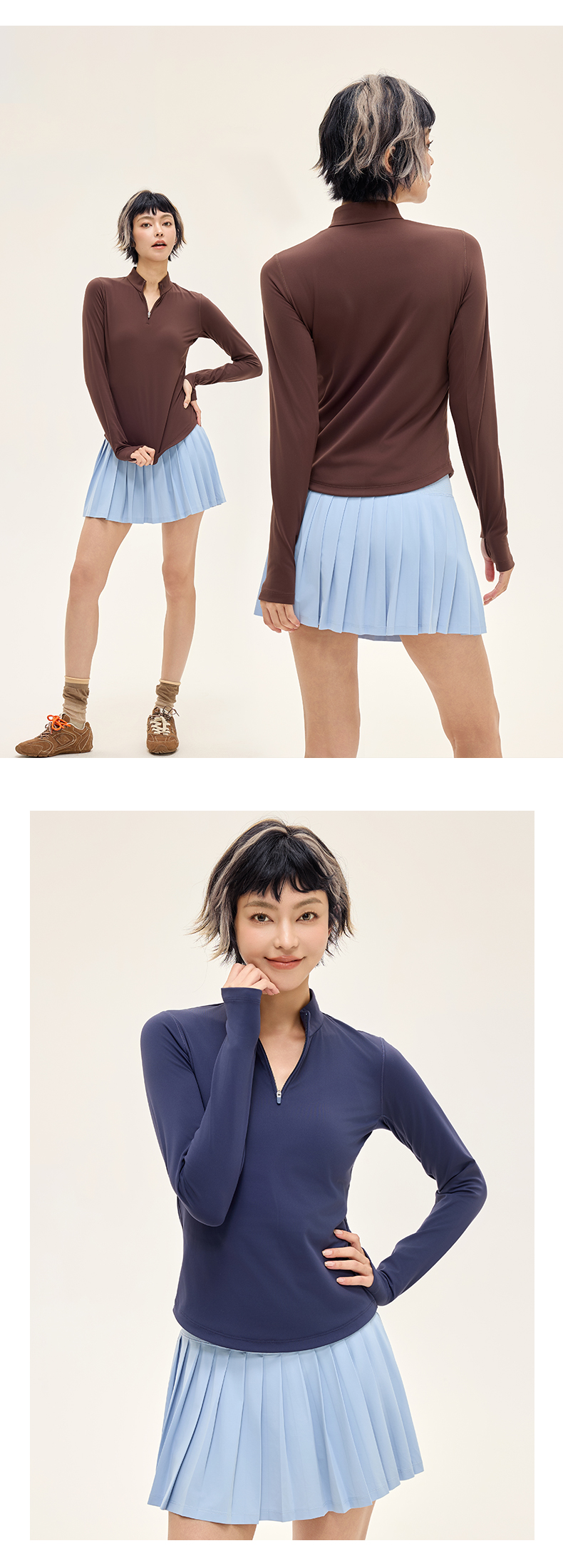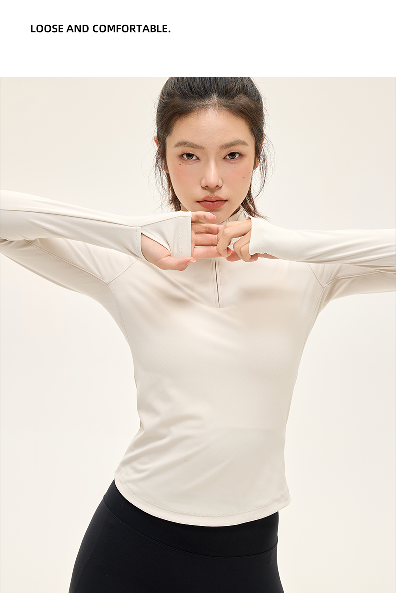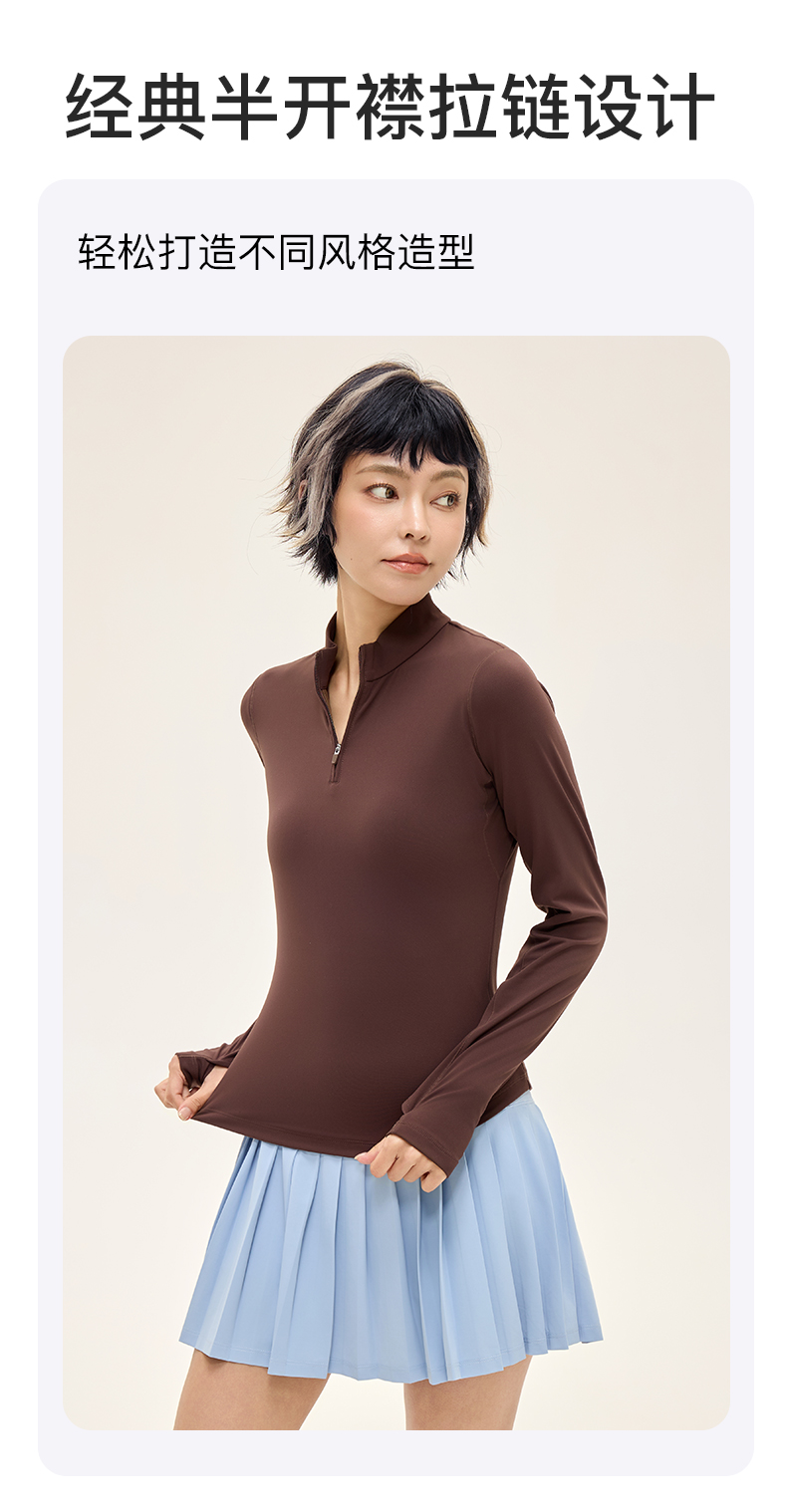 Leorrey乐拉经典半拉链收腰微磨绒高弹柔软秋休闲健身长袖运动T恤CX3340
