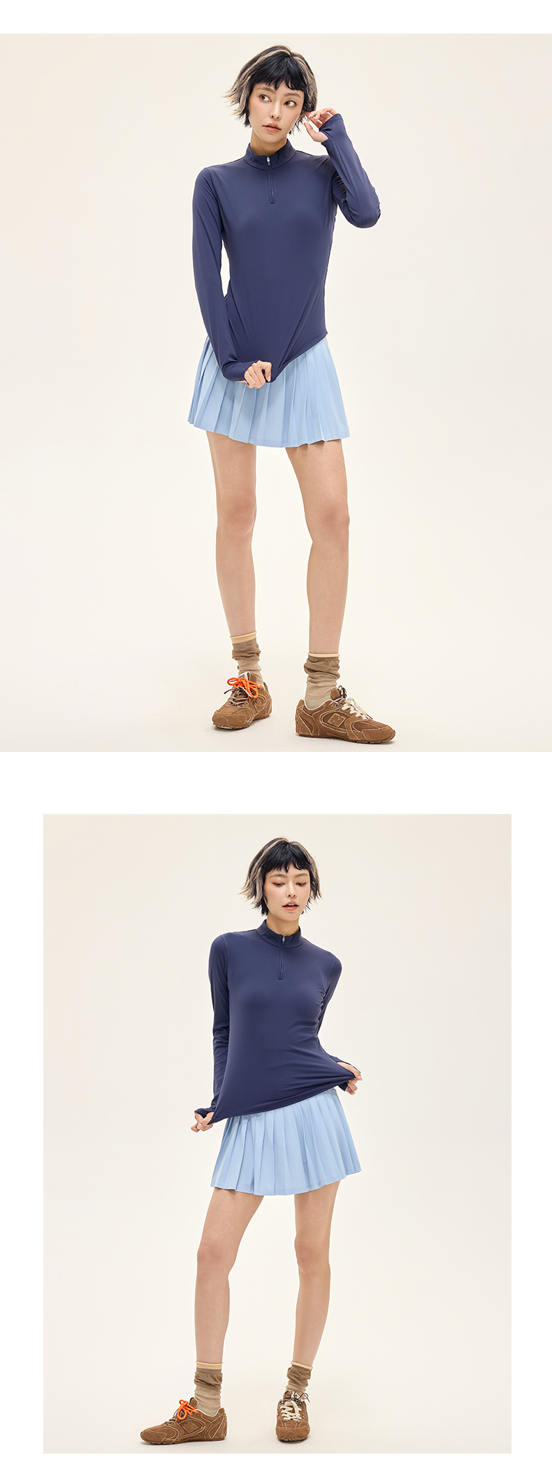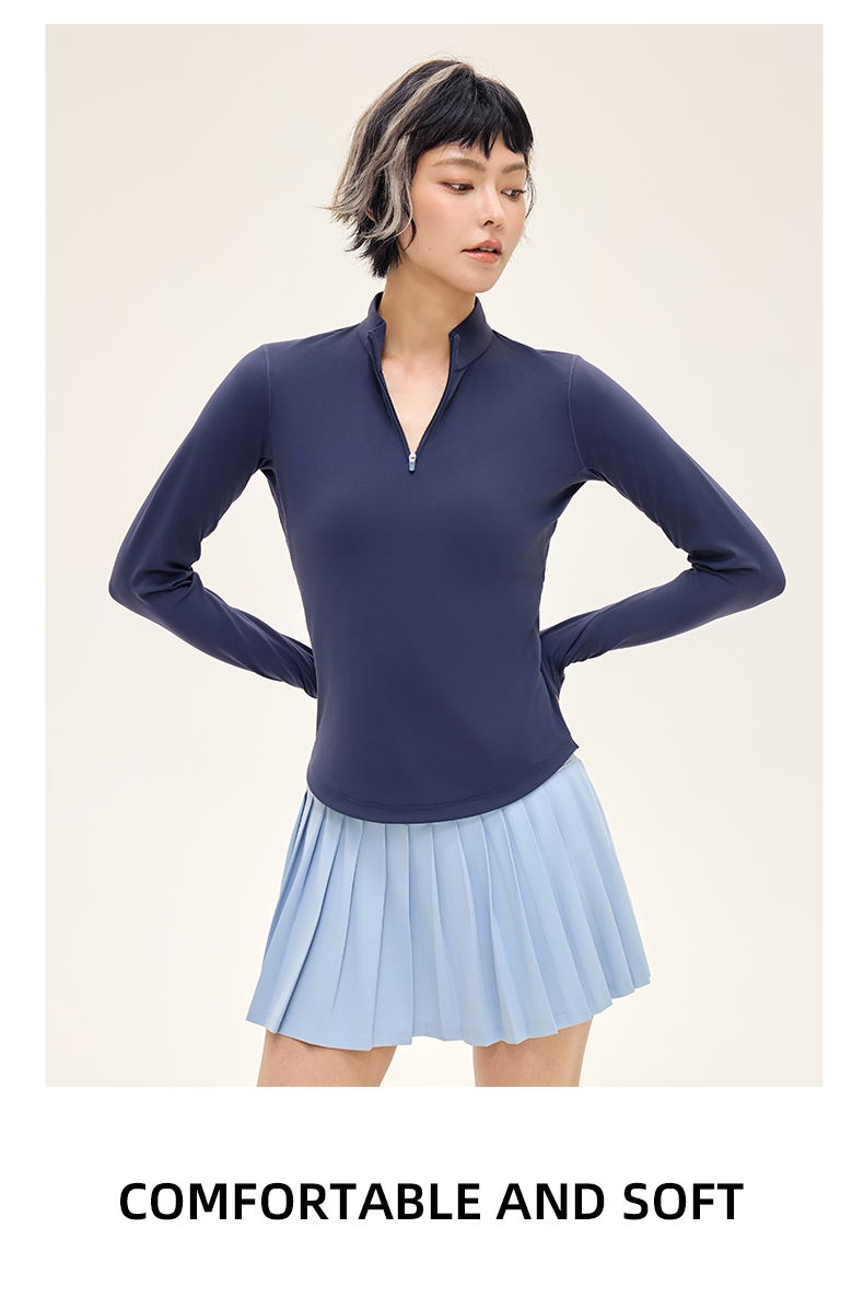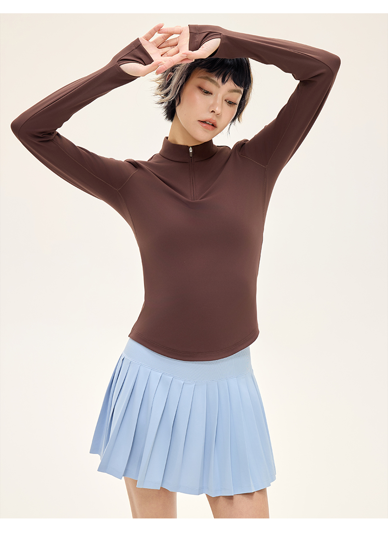Leorrey乐拉经典半拉链收腰微磨绒高弹柔软秋休闲健身长袖运动T恤CX3340