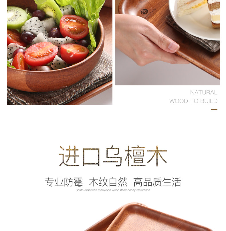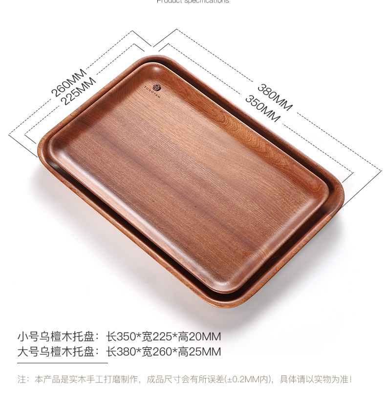 原森太乌檀木长方形小号托盘35*23*2CMYSTPZ030