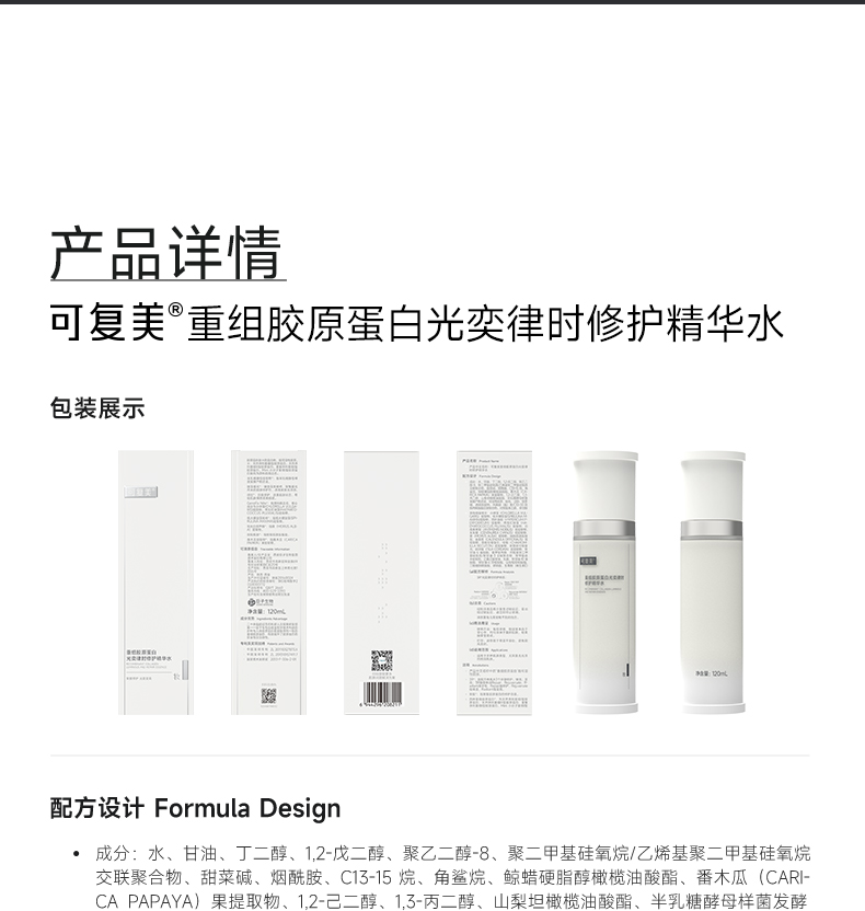 【可复美焦点水】可复美重组胶原蛋白光奕律时修护精华水120ml/瓶