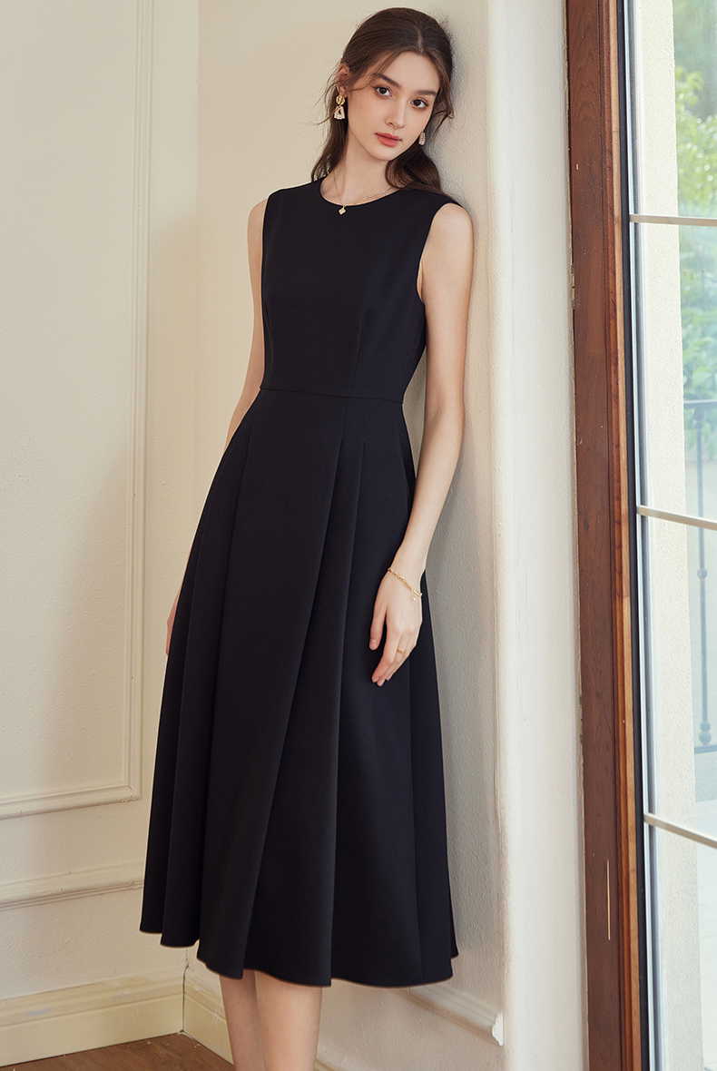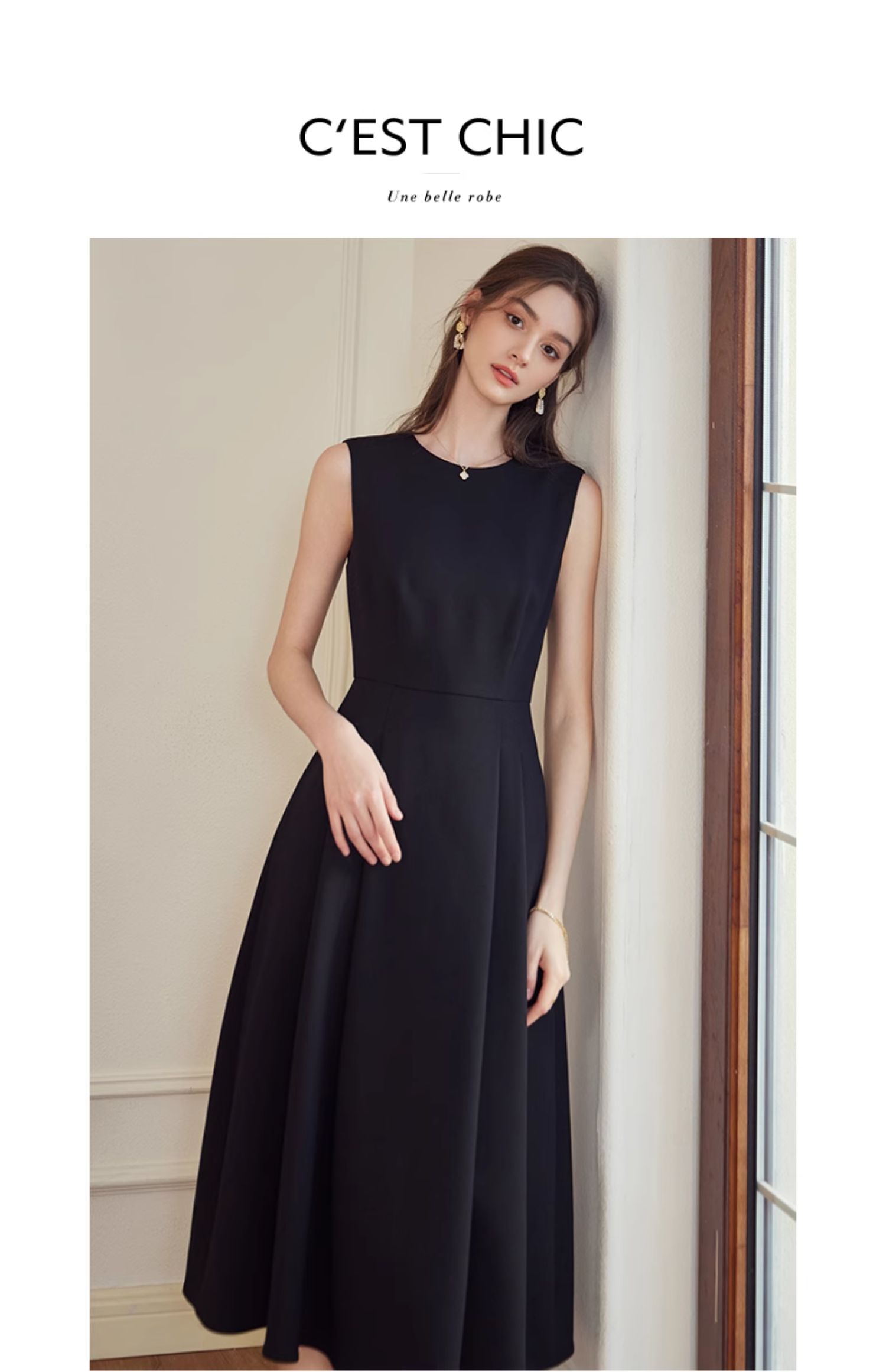 *【罗衣】优雅大摆赫本风连衣裙2025春装新款高级黑色年会礼服裙09928