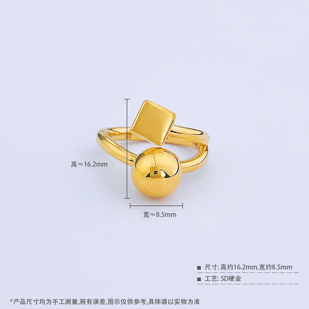 【限时克减150元】足金 【精品】无氰5D几何方块金球圆珠女戒(AR5DJZ00011)(预售产品下单后不退款不退货不换货不补差价)(预售产品下单后不退款不退货不换货不补差价)