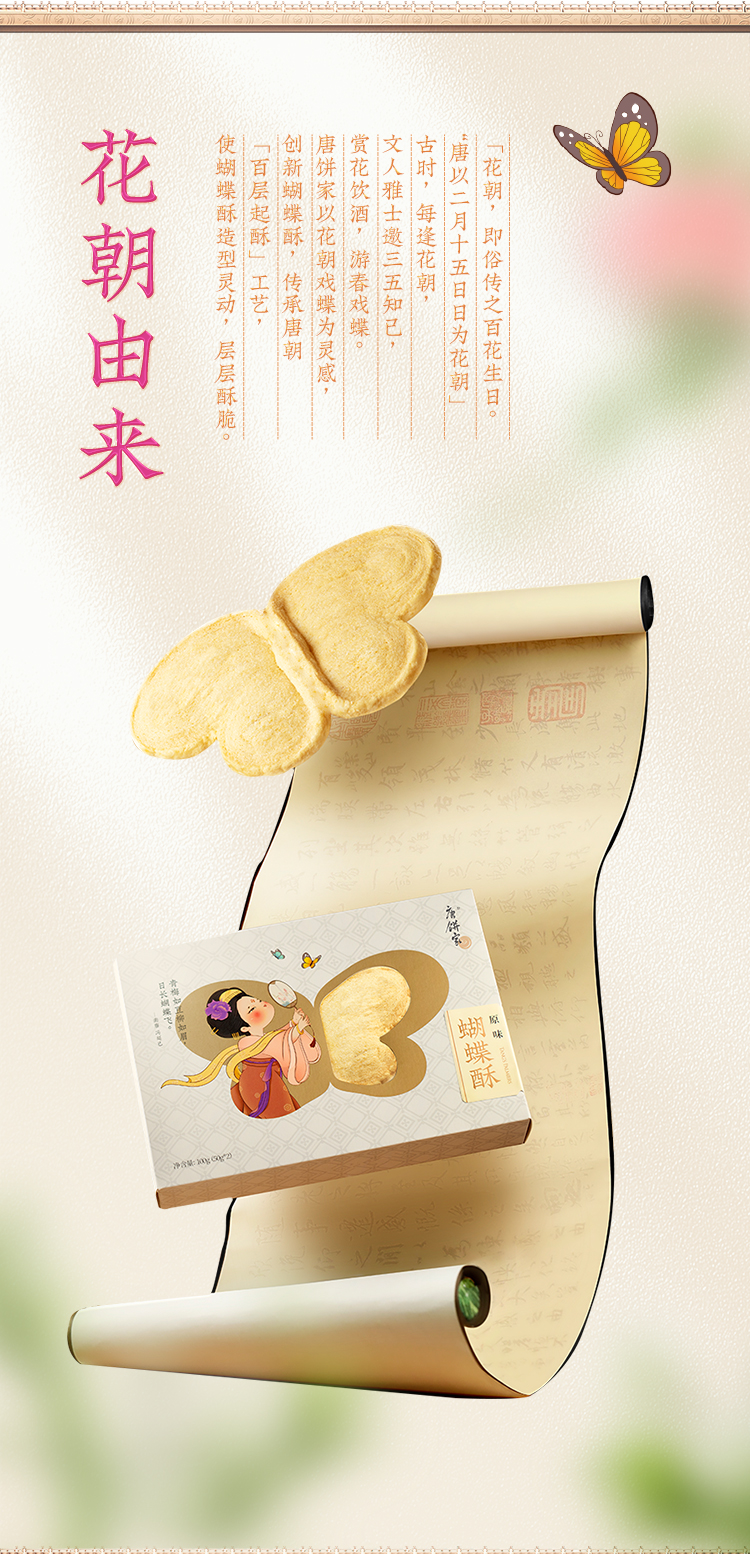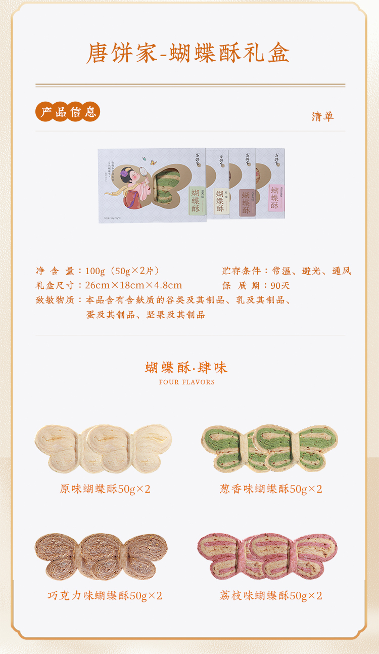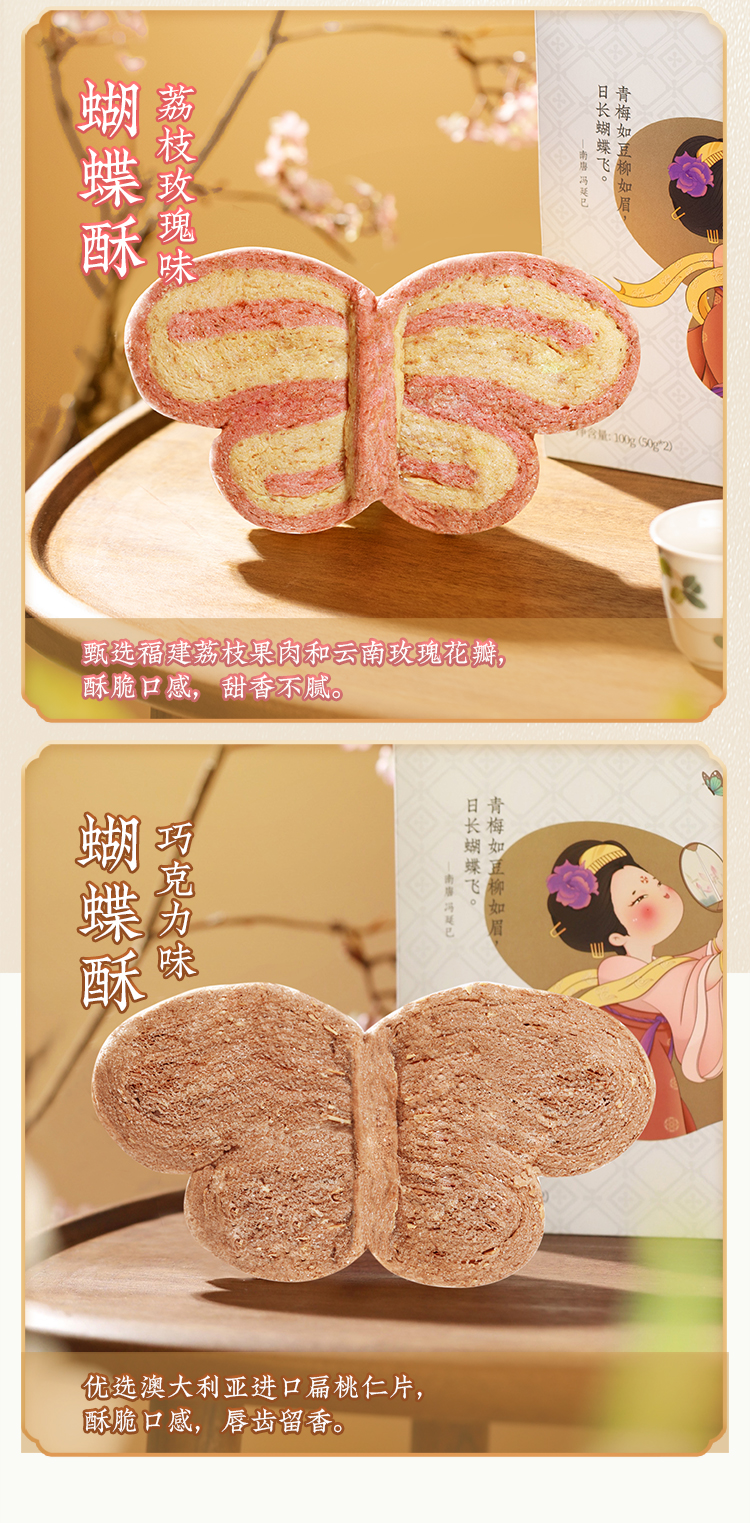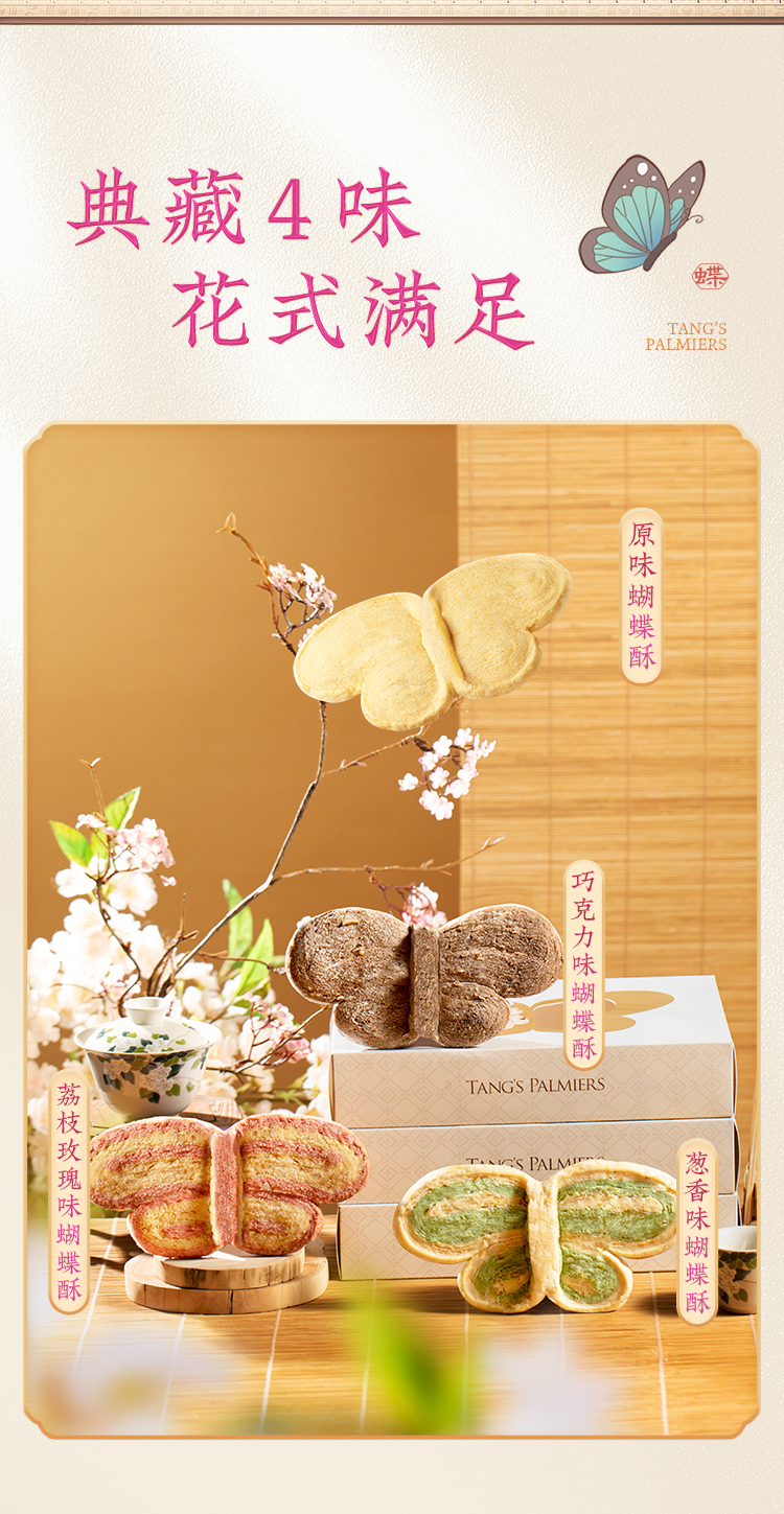 唐饼家 蝴蝶酥礼盒(原味/荔枝玫瑰味)100g*2