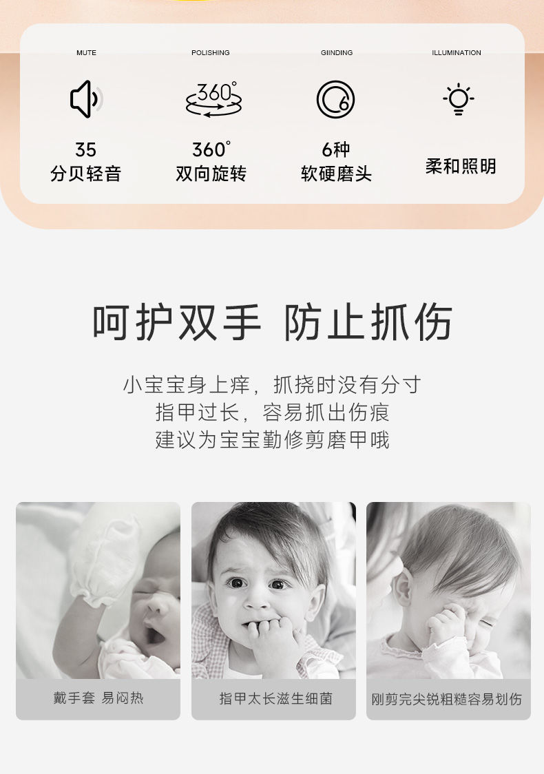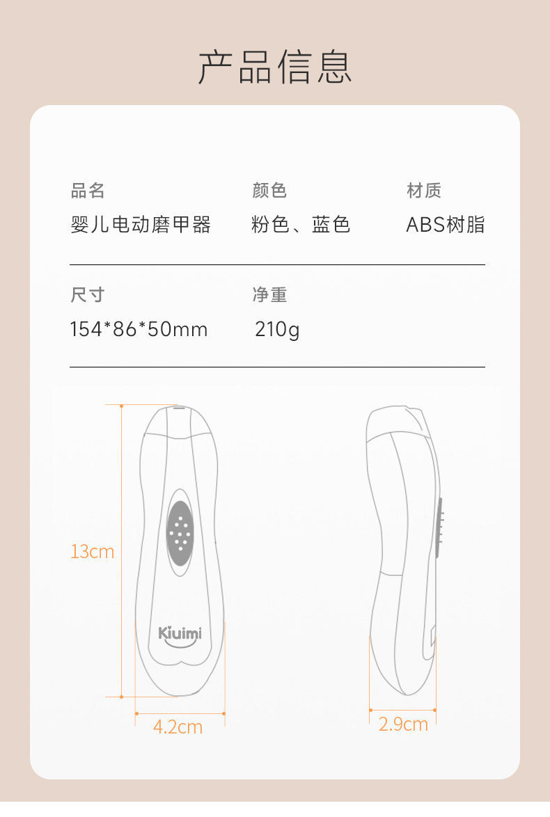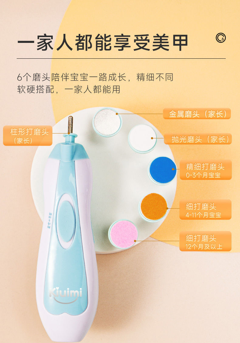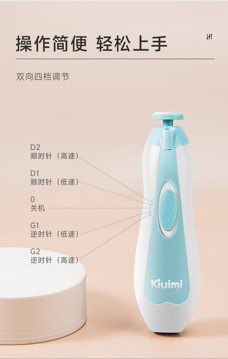 kiuimi宝宝电动磨甲器婴儿指甲剪新生儿童指甲剪婴儿防夹肉指甲剪国庆出游