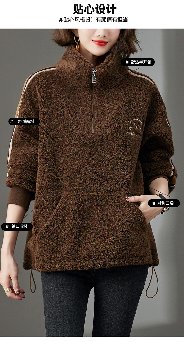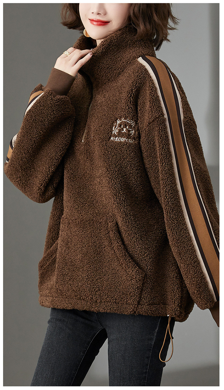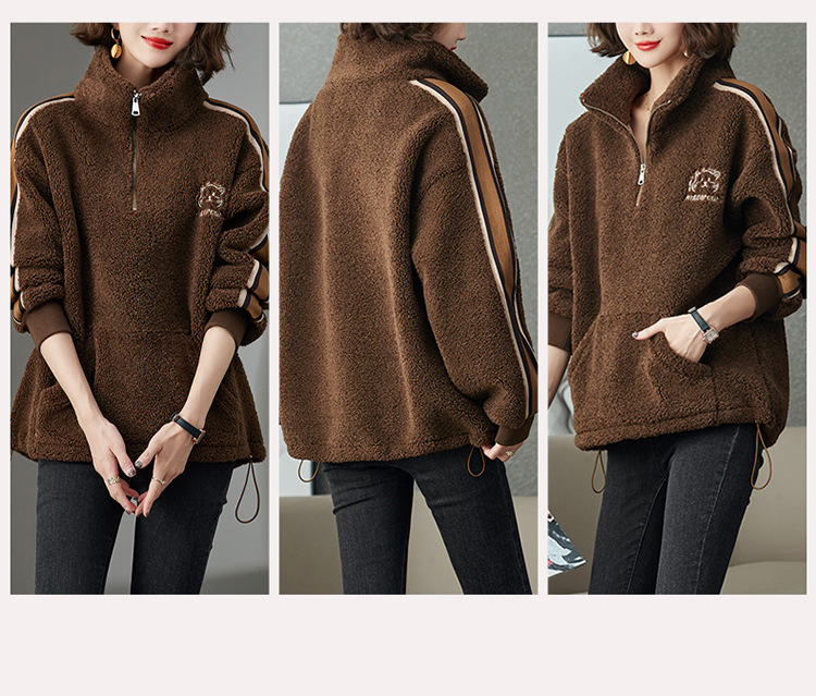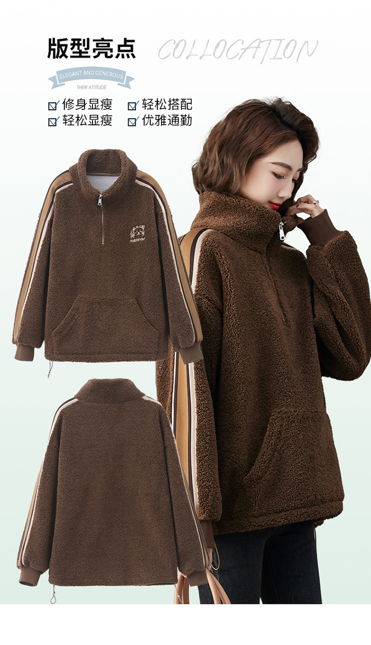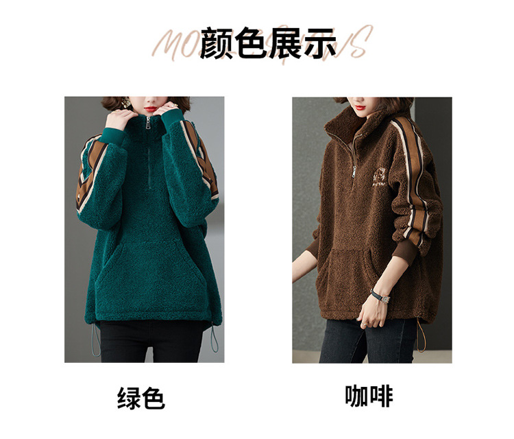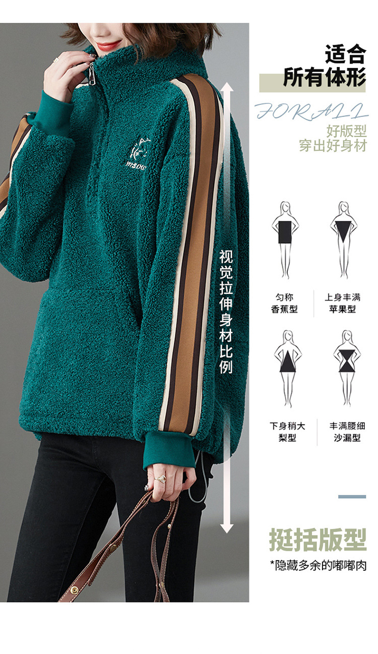 加绒立领卫衣,新款中年妈妈宽松大码保暖加厚休闲外套HR-93723