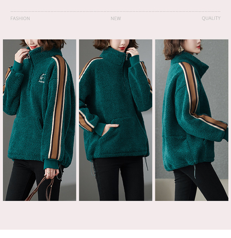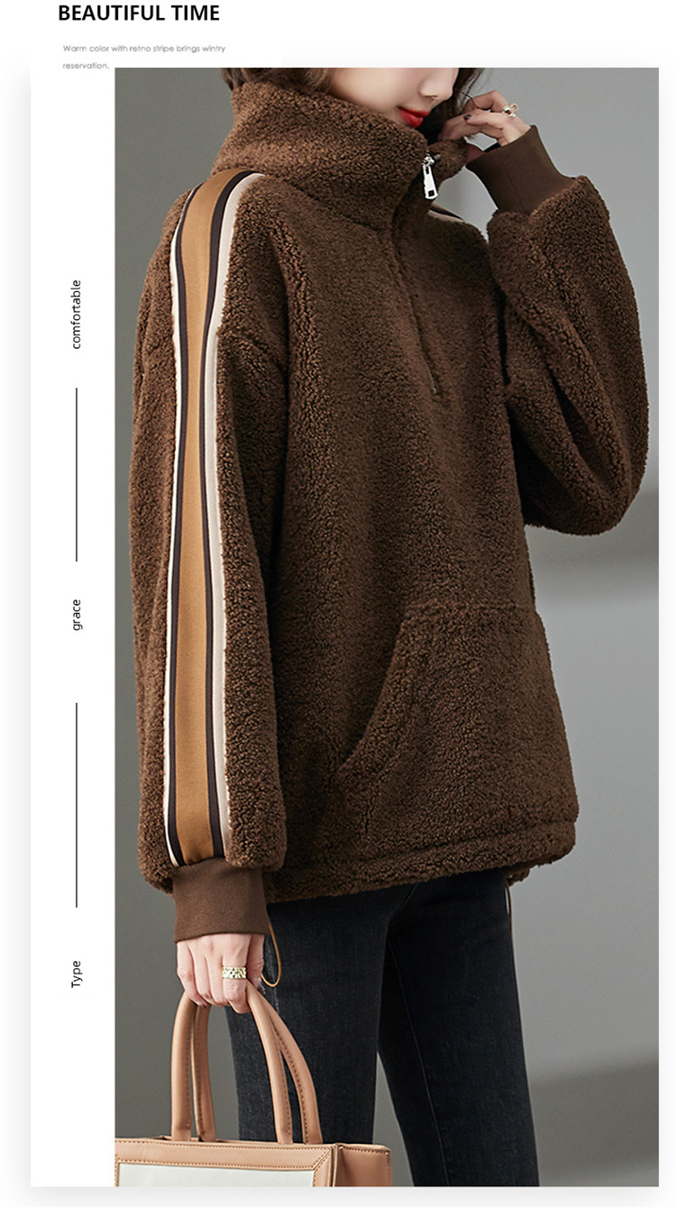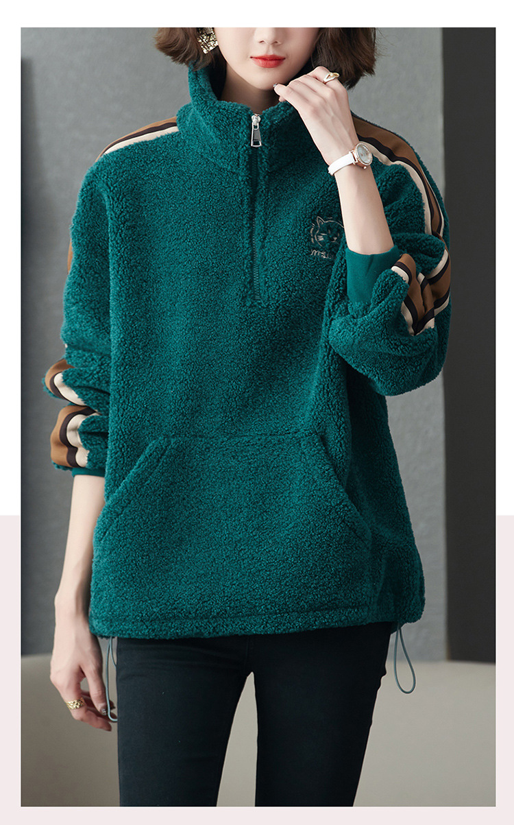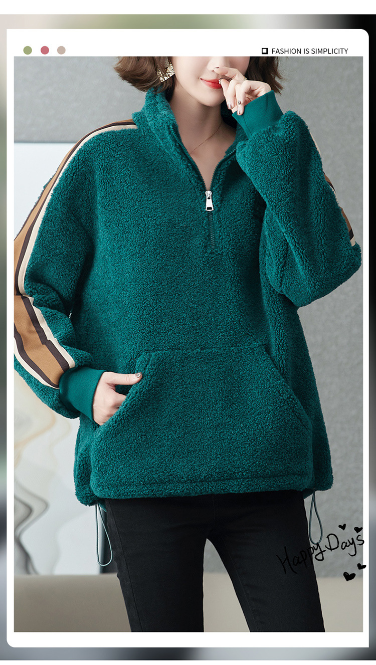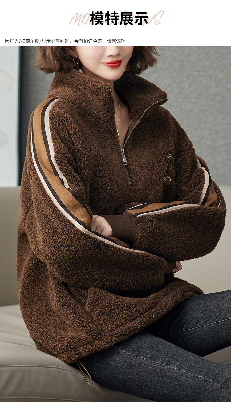 加绒立领卫衣,新款中年妈妈宽松大码保暖加厚休闲外套HR-93723