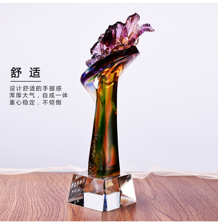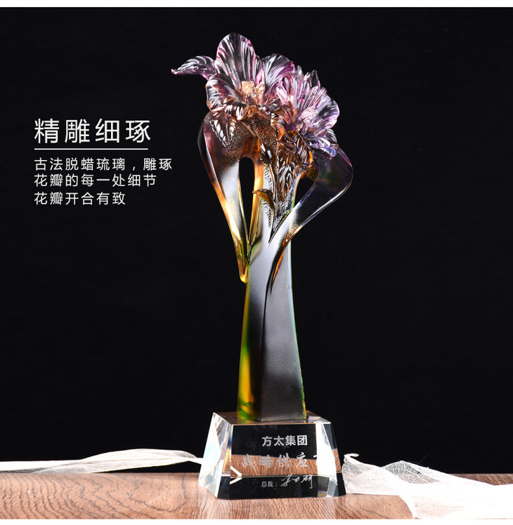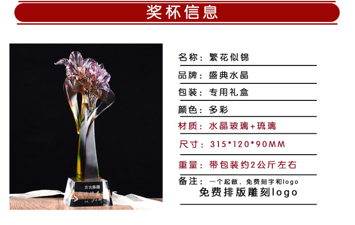 琉璃奖杯定制 水晶奖杯定做 纪念品定制 免费刻字排版 繁花似锦