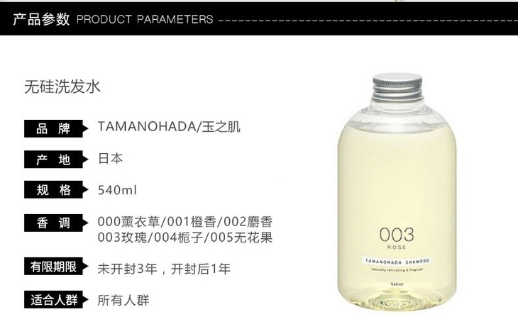 【保税仓】TAMANOHADA/玉之肌 洗发水||003 玫瑰 540ml