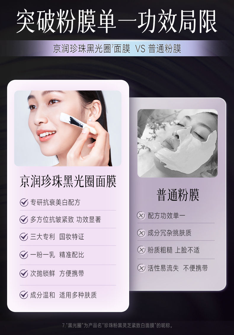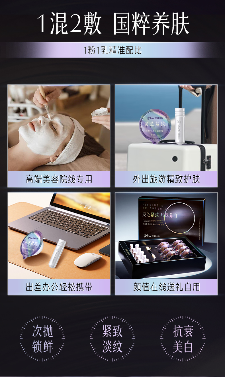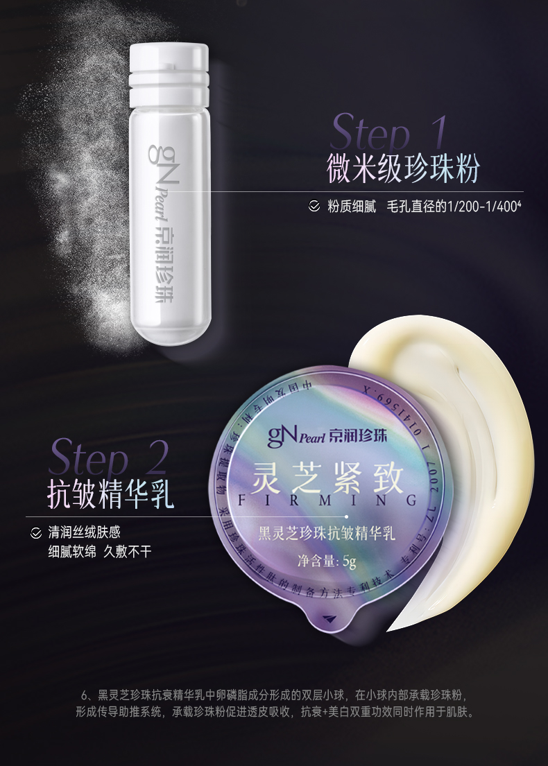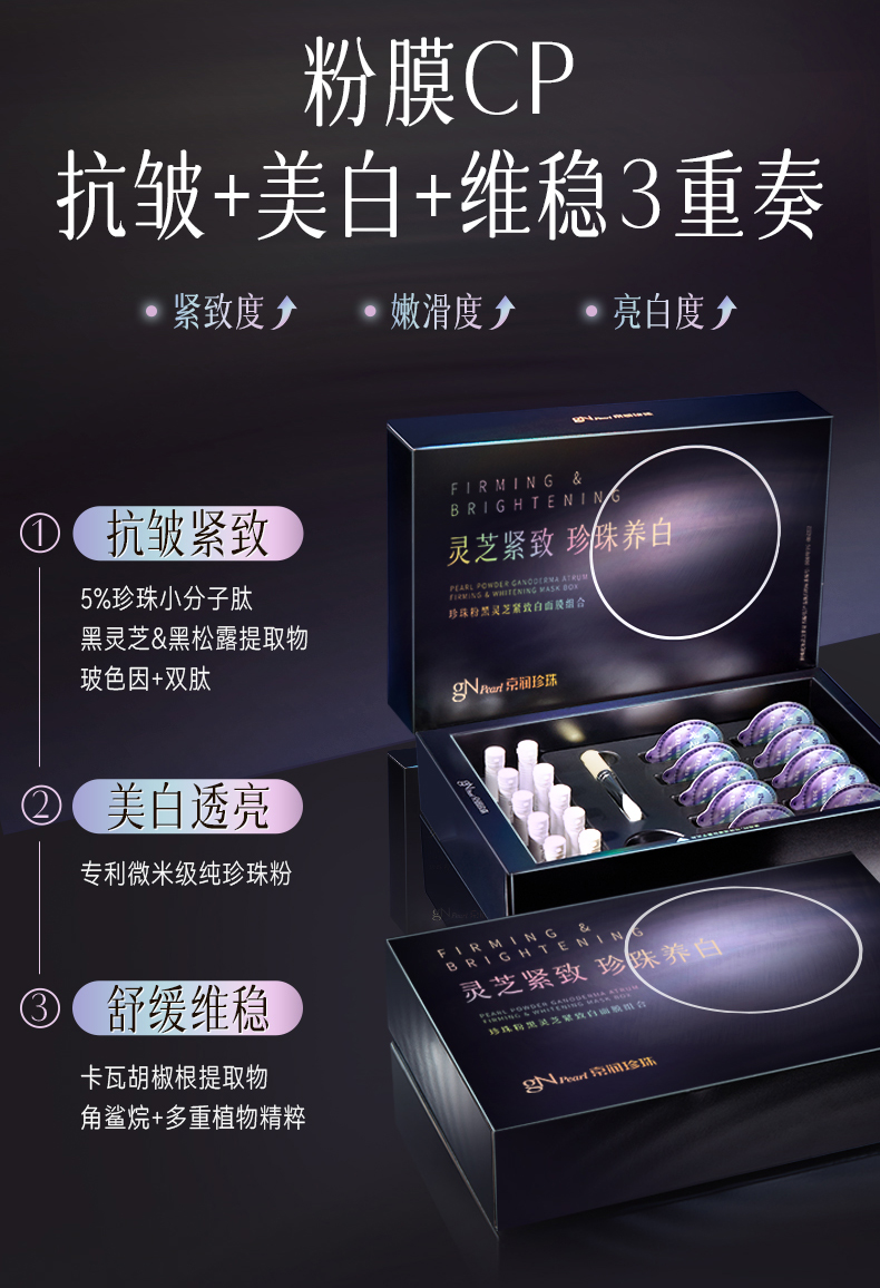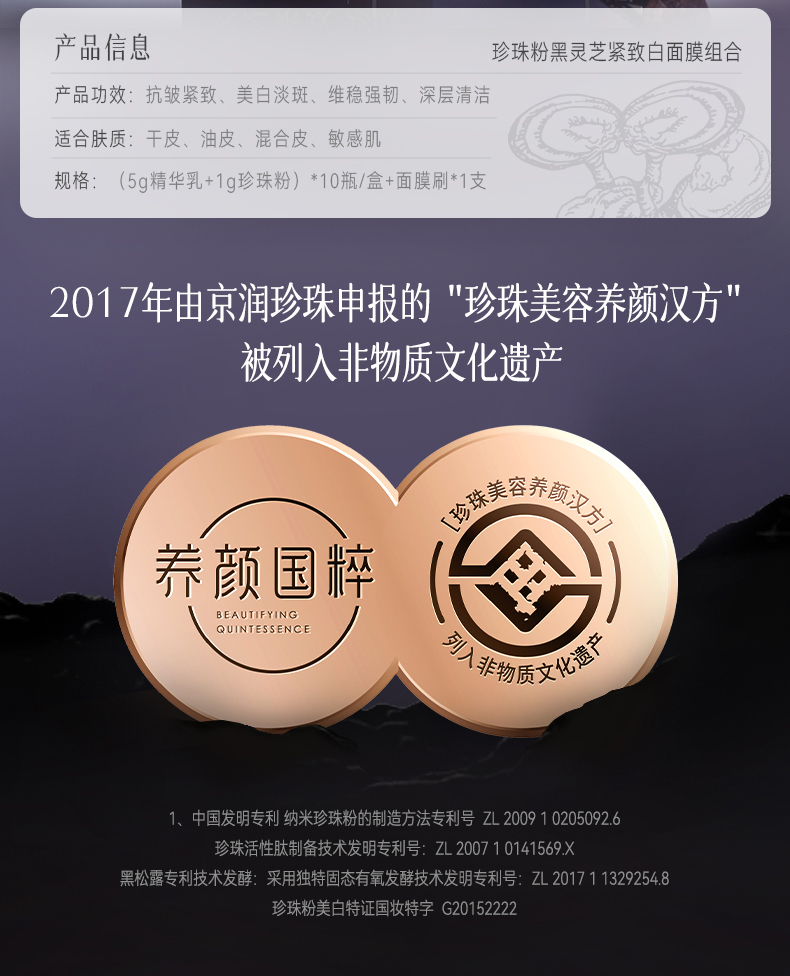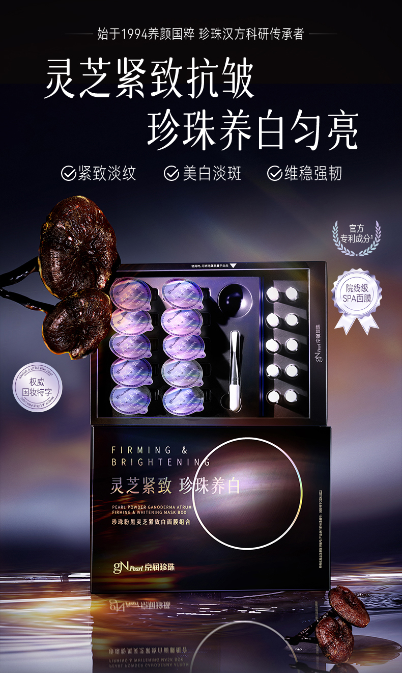 珍珠粉黑灵芝紧致白面膜组合1.5g*10瓶+5g*10颗【赠5盒体验装】京润珍珠