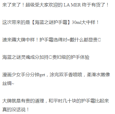 【品牌授权】海蓝之谜护手霜30ml*3 海蓝之谜贵妇级护手霜 轻薄滋润不厚重