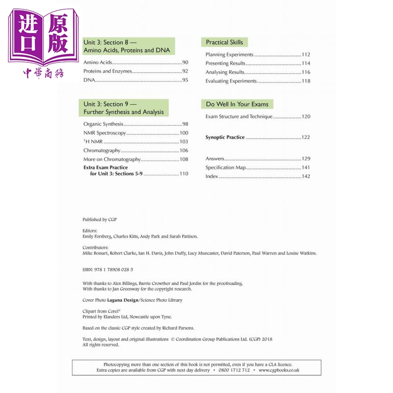【中商原版】英国原版CGP教辅 2018年新的A-Level化学AQA 第2年完整修订与实践New A-Level Chemistry for 2018 AQA Year 2 Co