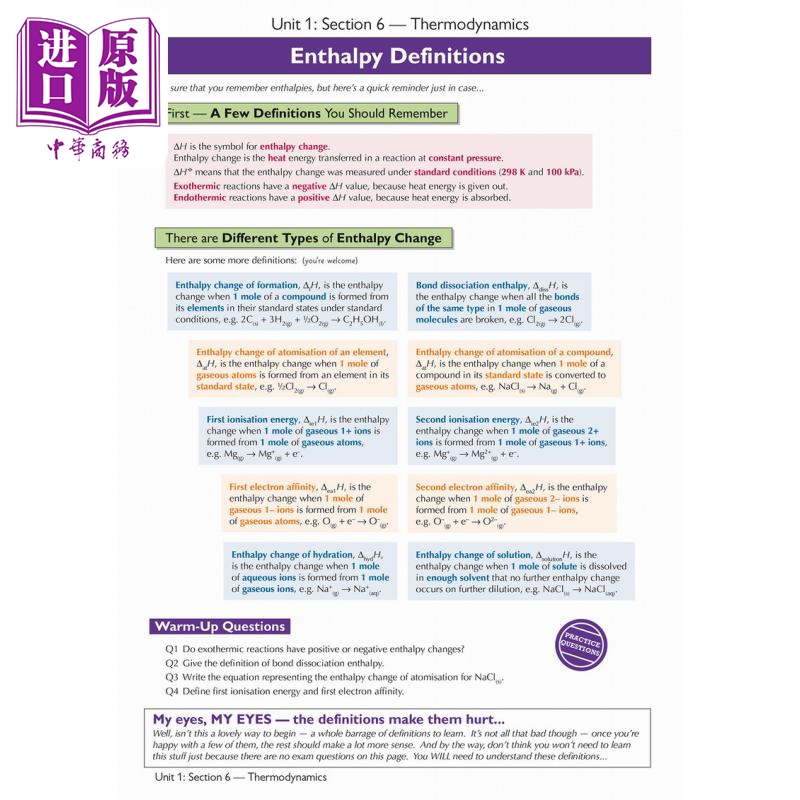 This new and improved Complete Revision & Practice book for Year 2 of AQA A-Level Chemistry is perfect for reference throughout the year, and preparing for the final exams! It has straightforward study notes, helpful examples and full-colour diagrams.