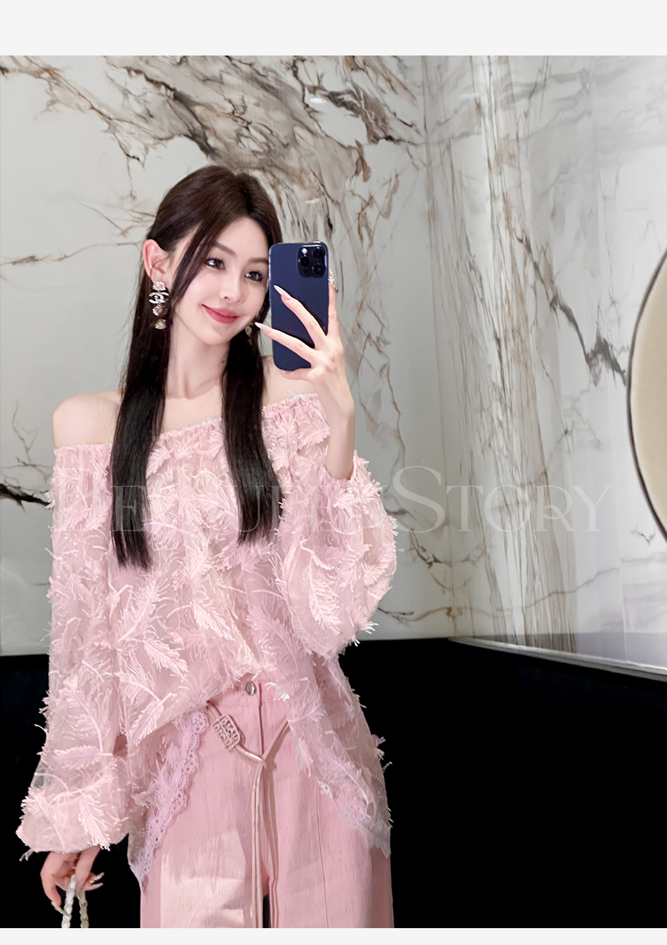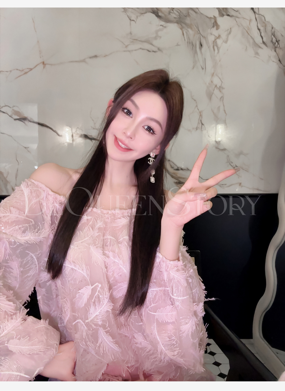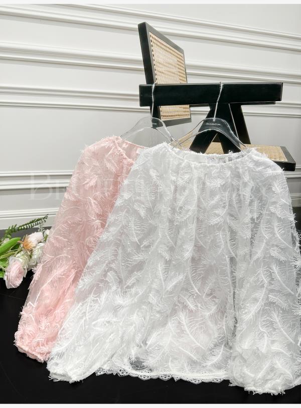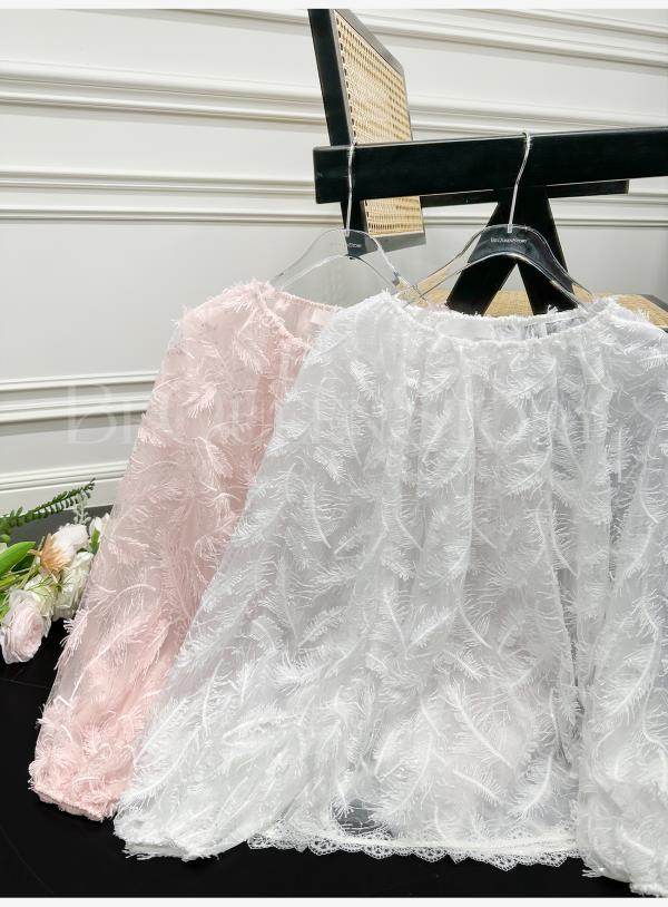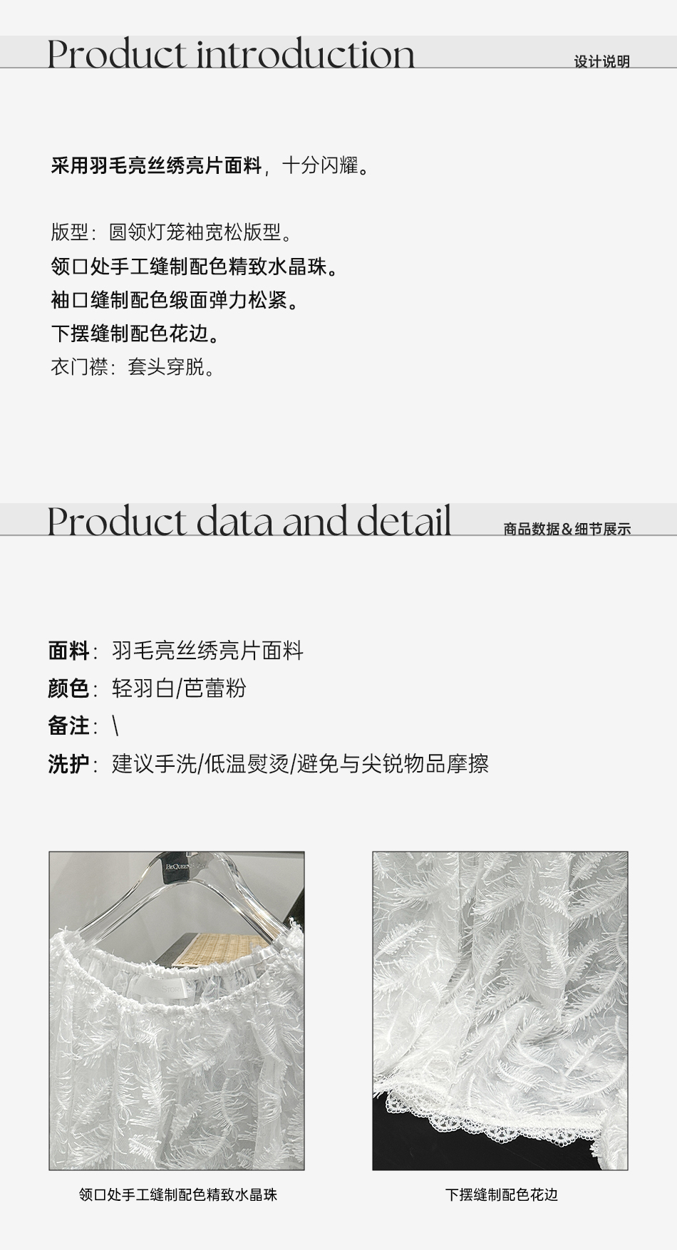 BeQueenStory【幻境羽翼】羽毛丝绣亮片圆领灯笼袖衬衫2025春装新款