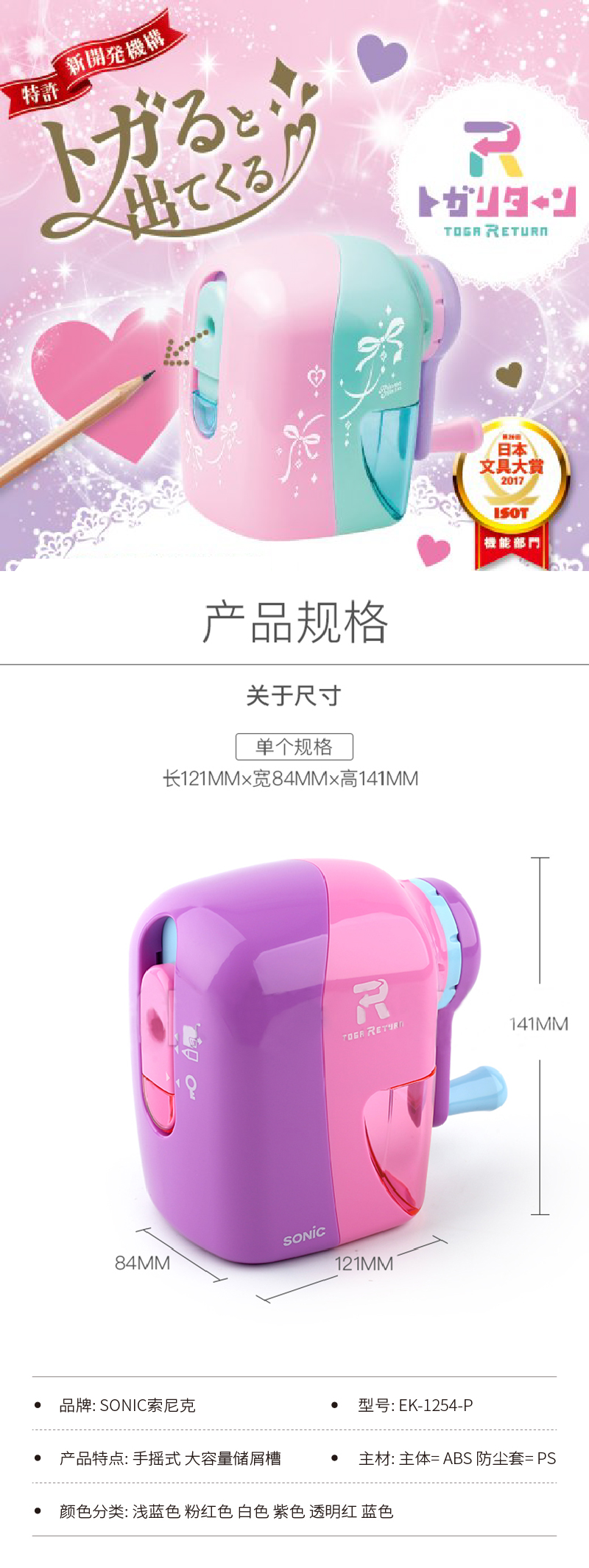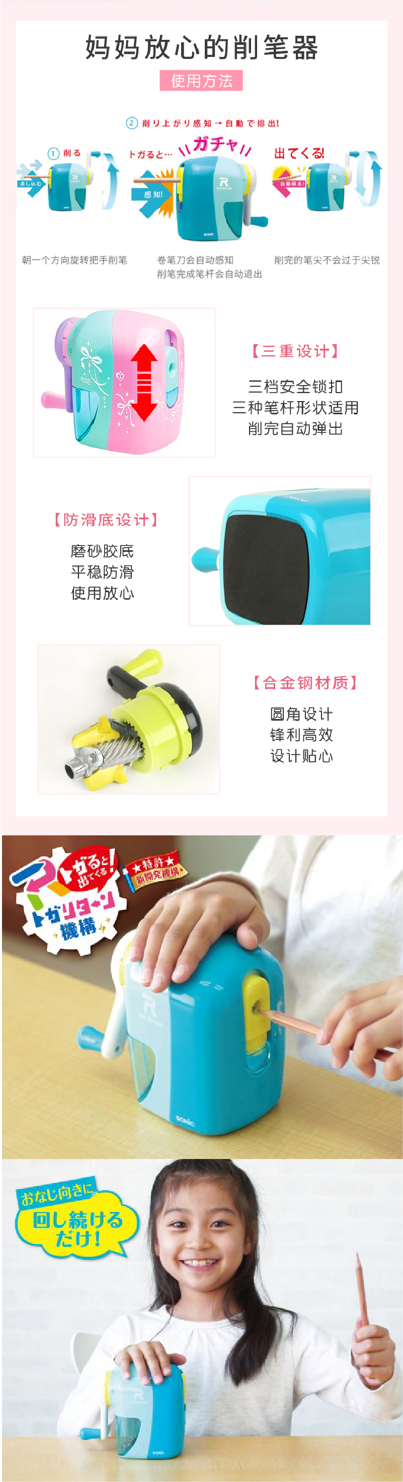 日本Sonic索尼克Liana Tiara Toga卷笔刀手摇铅笔削笔器小学生可削彩铅自动弹出