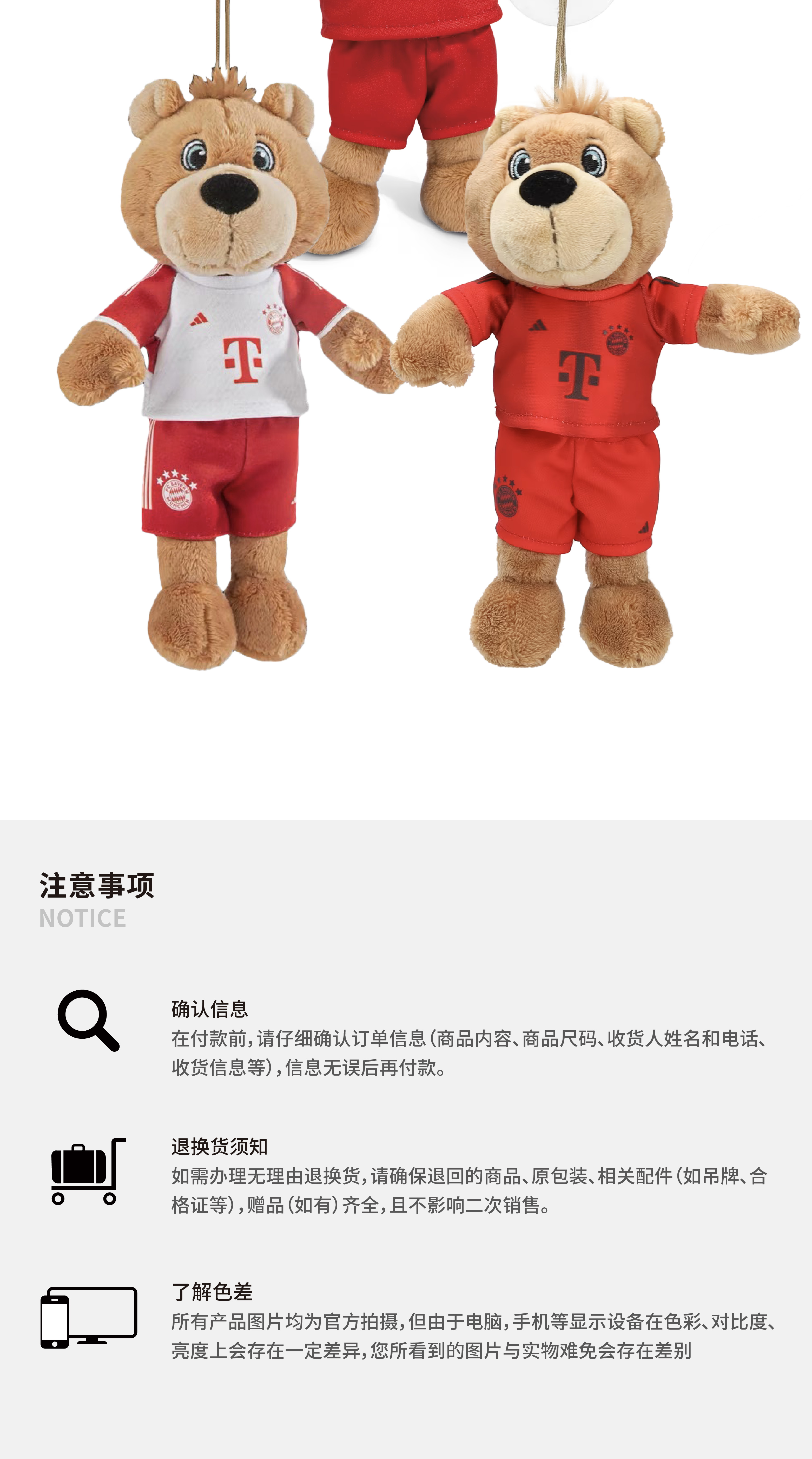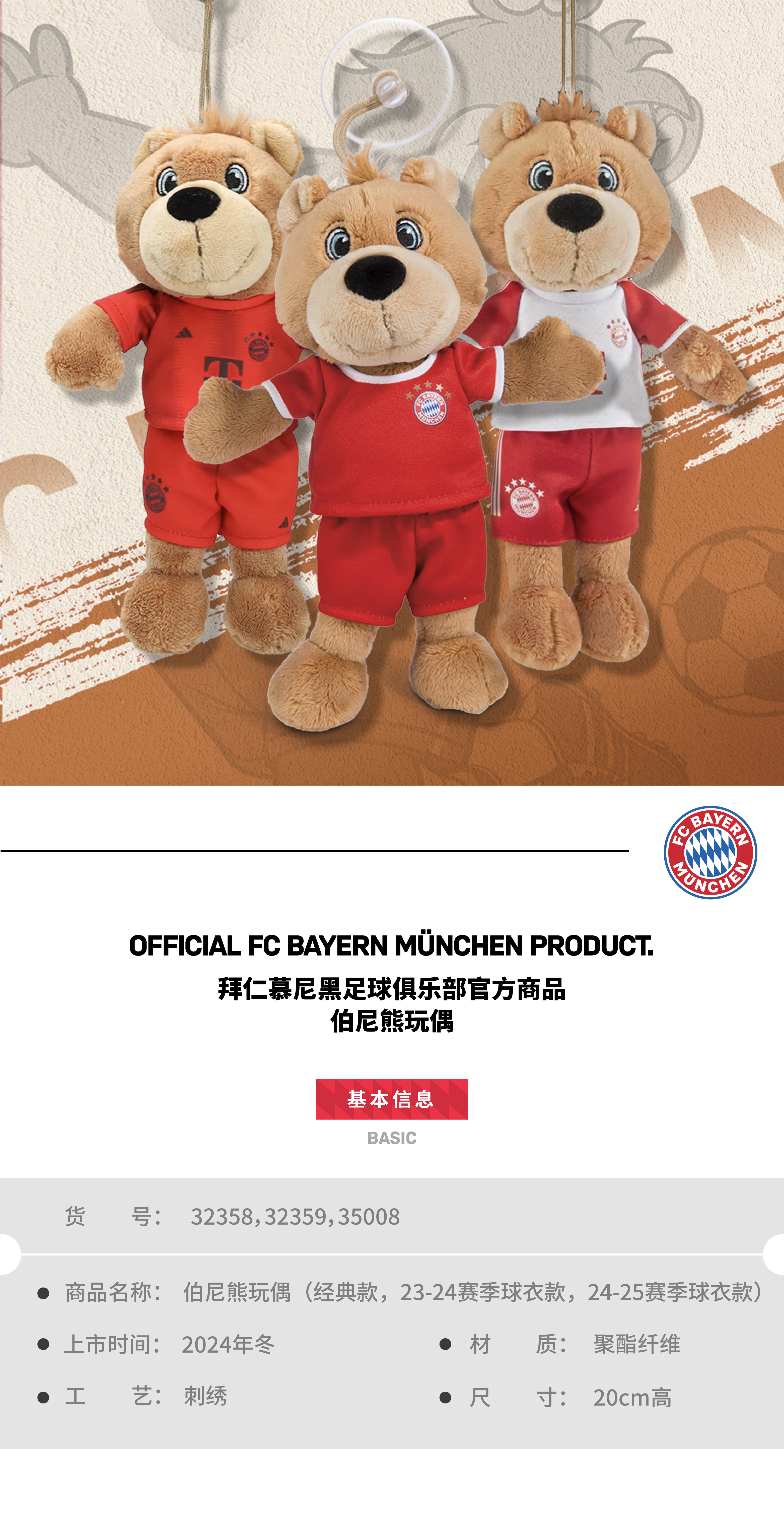 【官方正版】拜仁慕尼黑足球俱乐部|官网berni毛绒玩偶熊赛季球衣周边