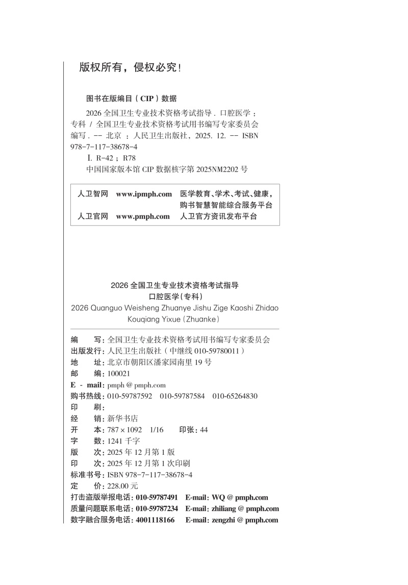 书名:2026全国卫生专业技术资格考试指导——口腔医学(专科)