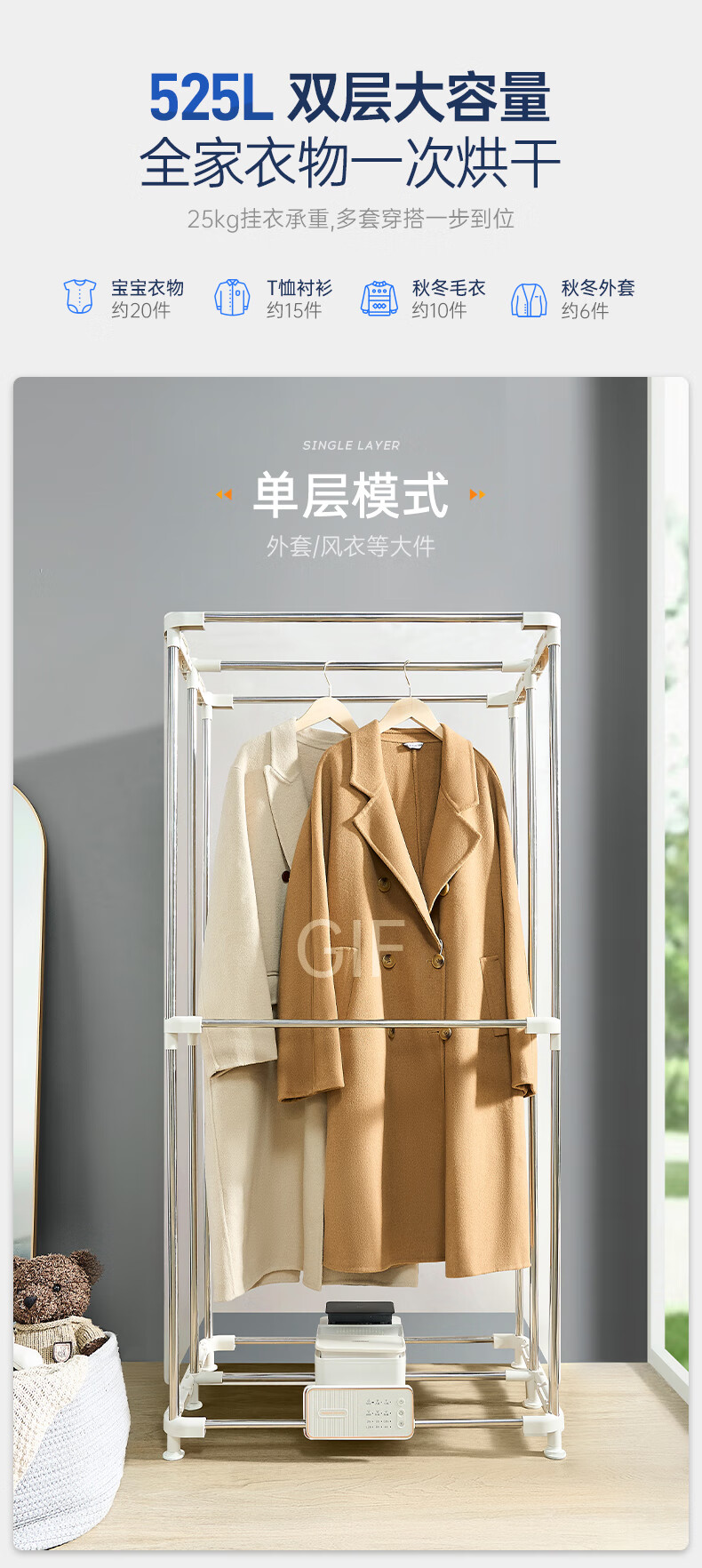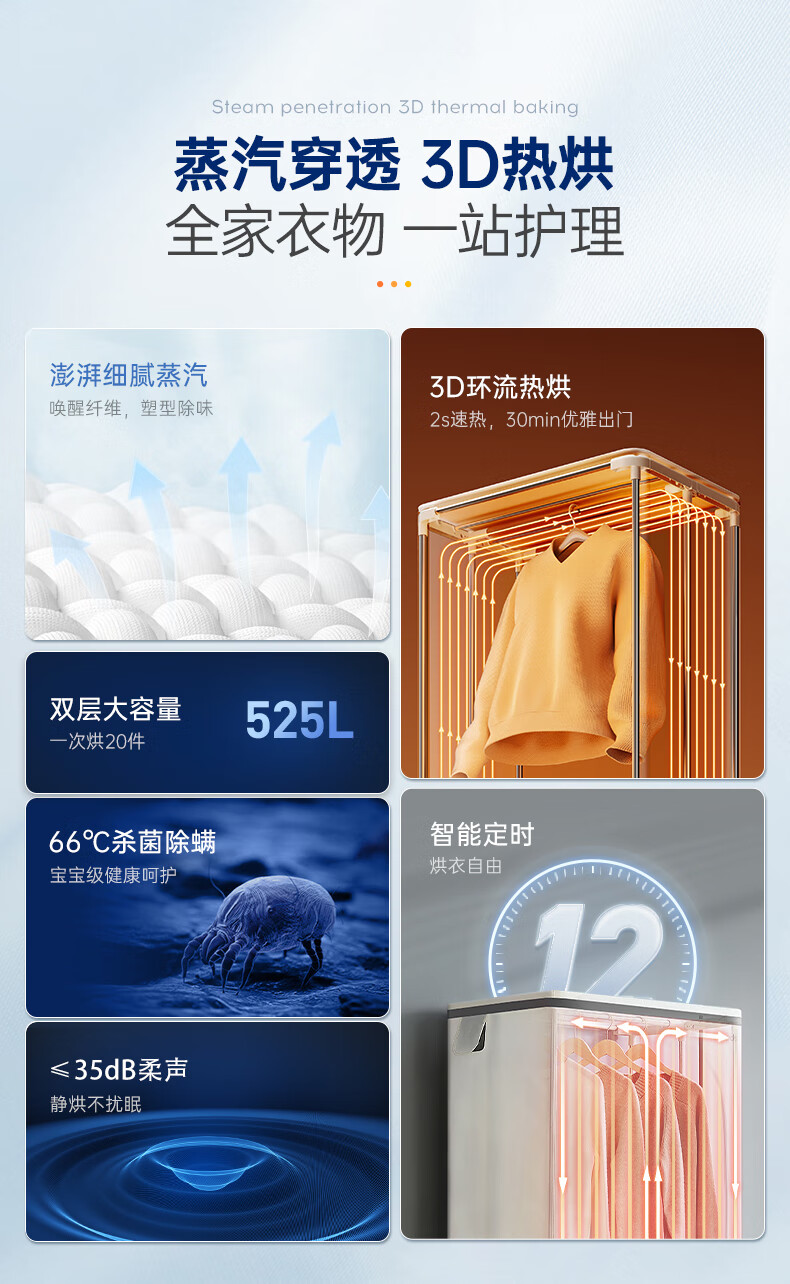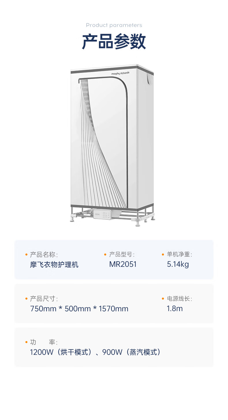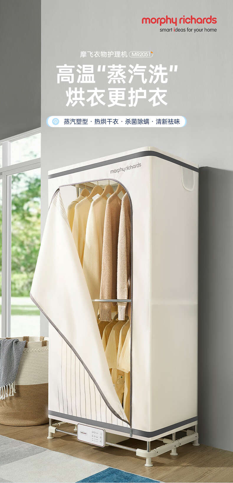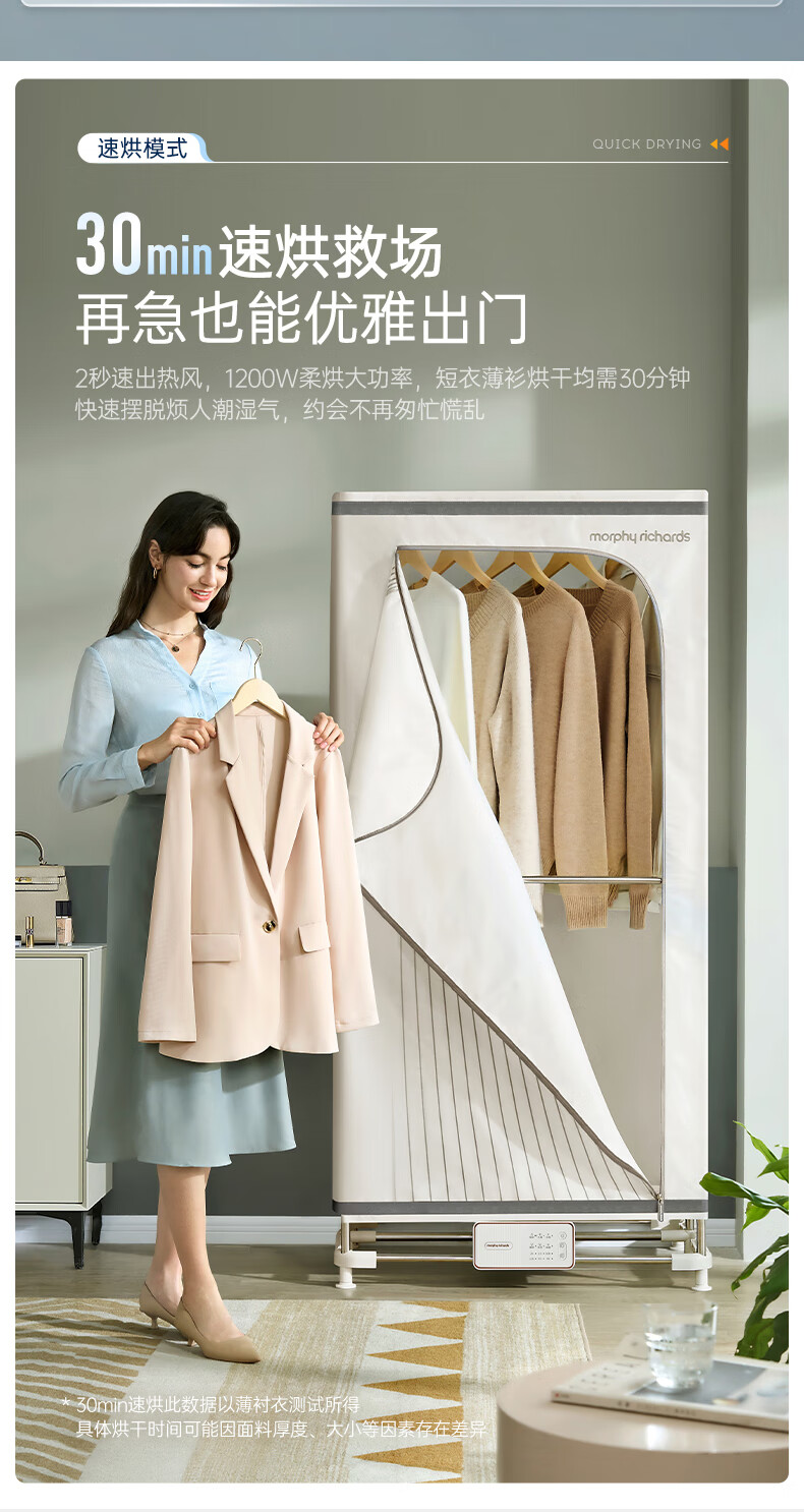 摩飞电器(Morphyrichards)干衣机烘干机家用烘衣机大容量衣服护理机风干机除菌除螨可定时烘干衣柜 MR2051