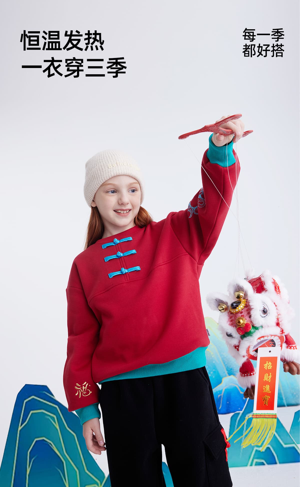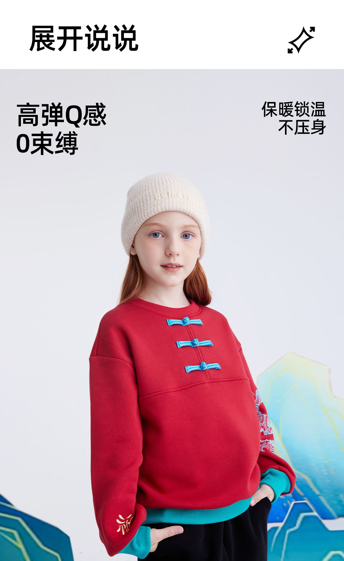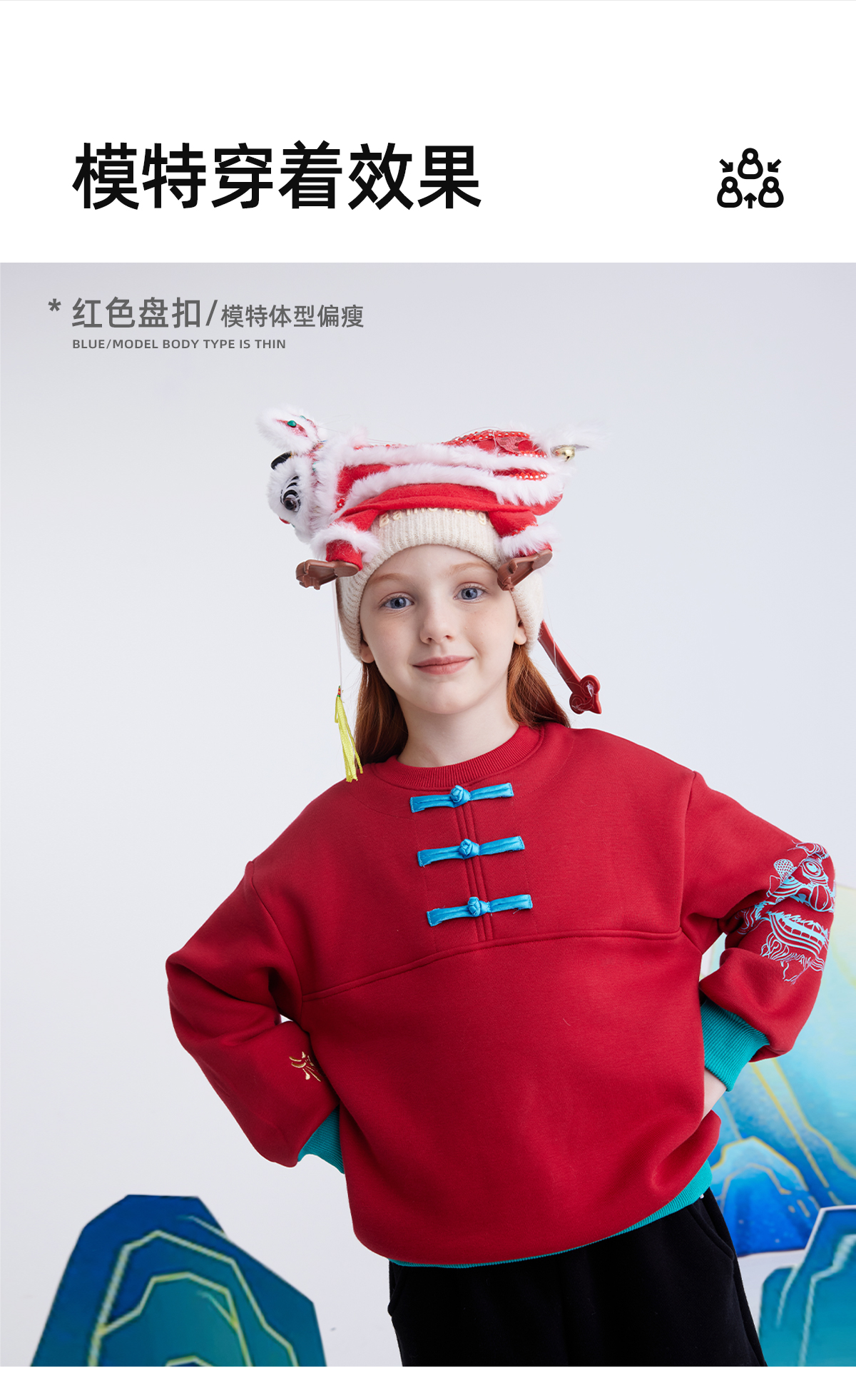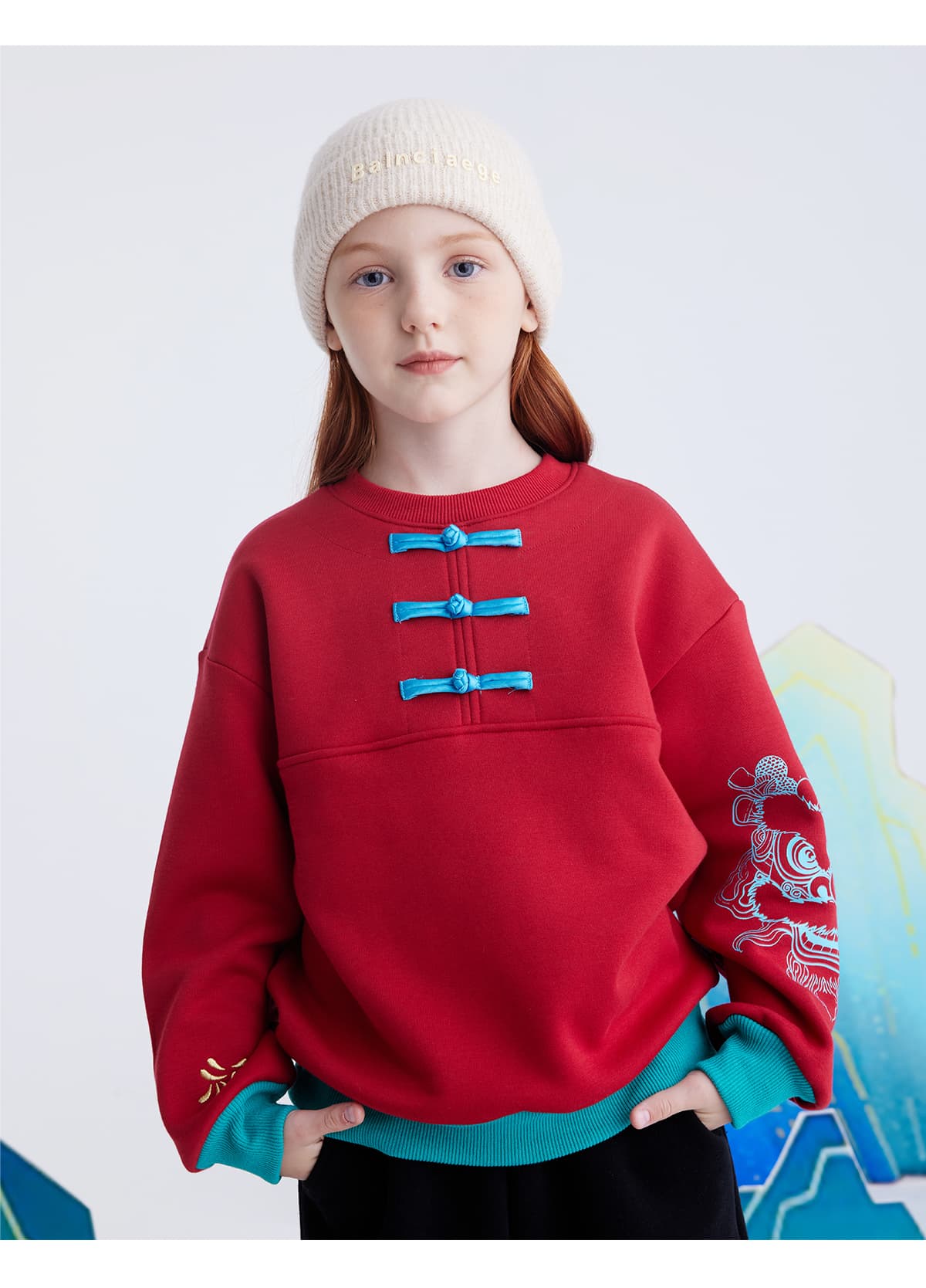 【锦服系列 新式盘扣】儿童盘扣印花新年加绒卫衣 PDWY2423