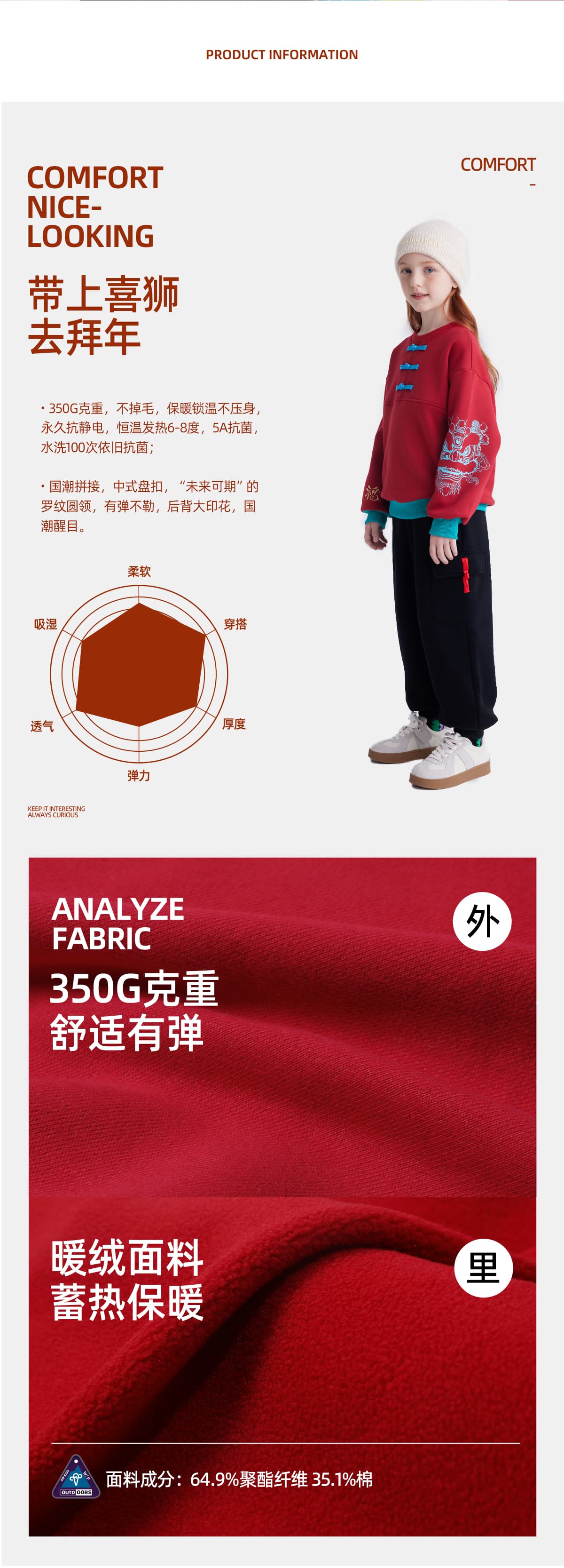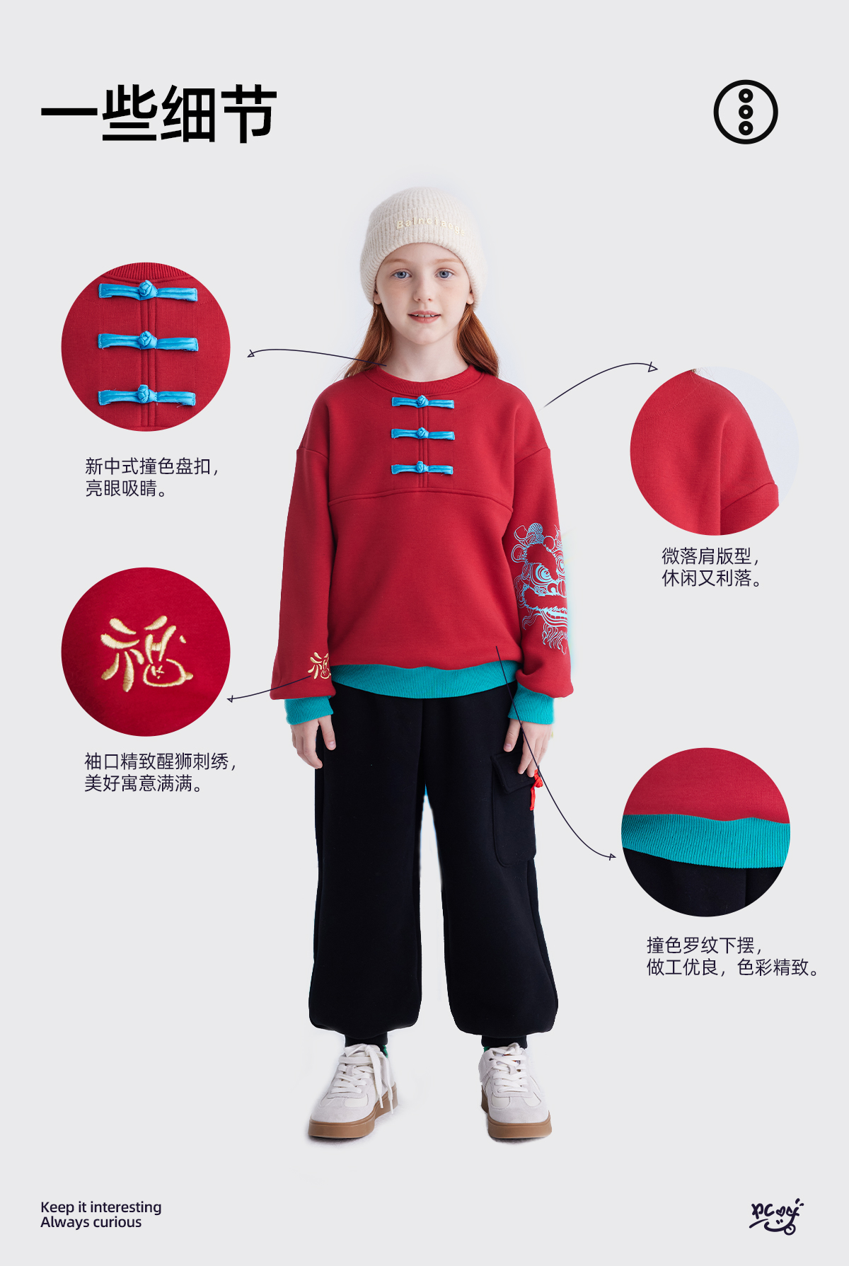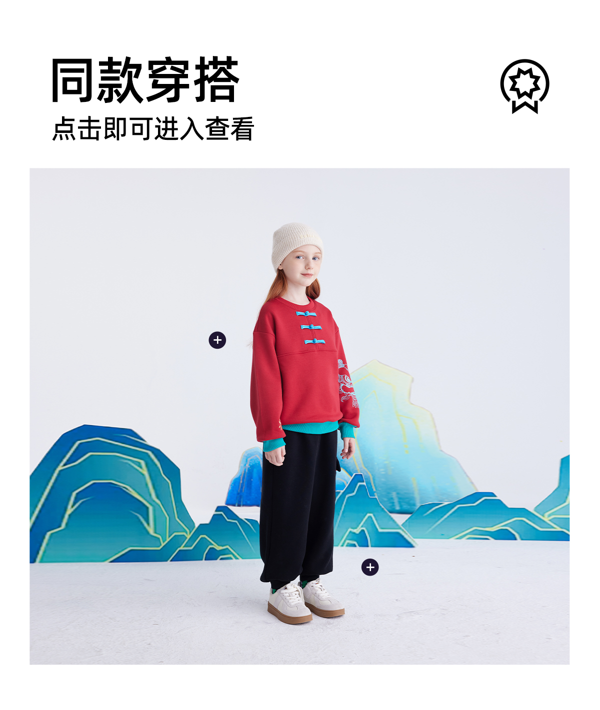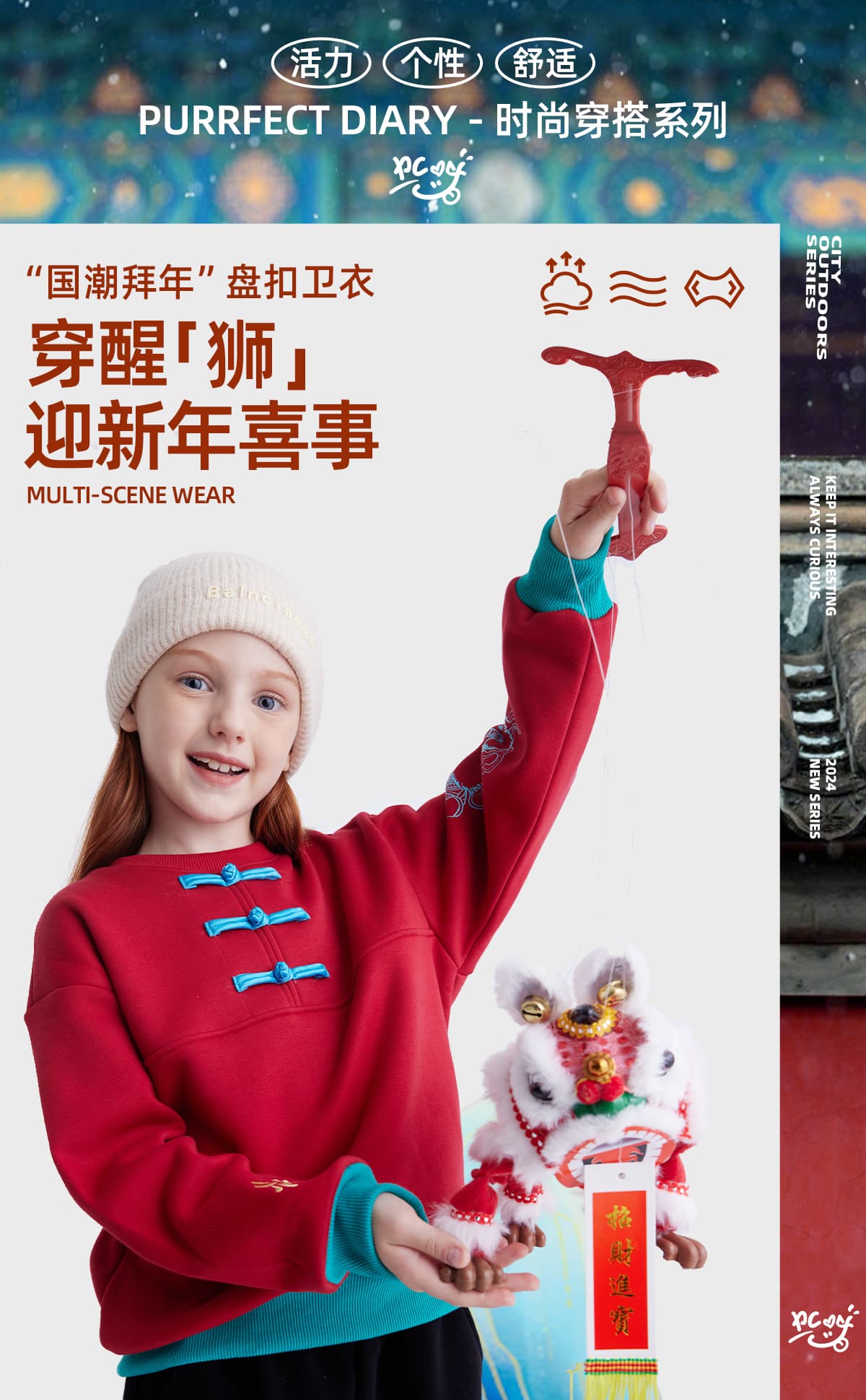 【锦服系列 新式盘扣】儿童盘扣印花新年加绒卫衣 PDWY2423