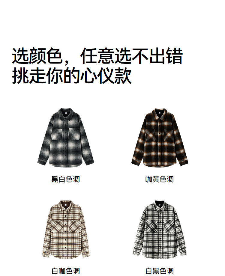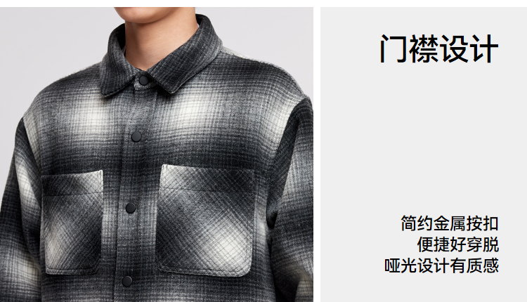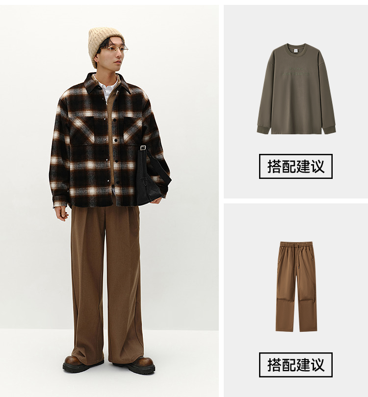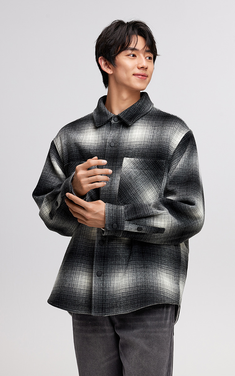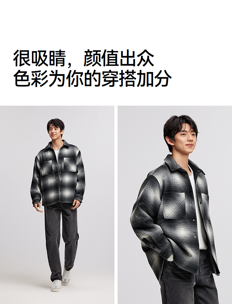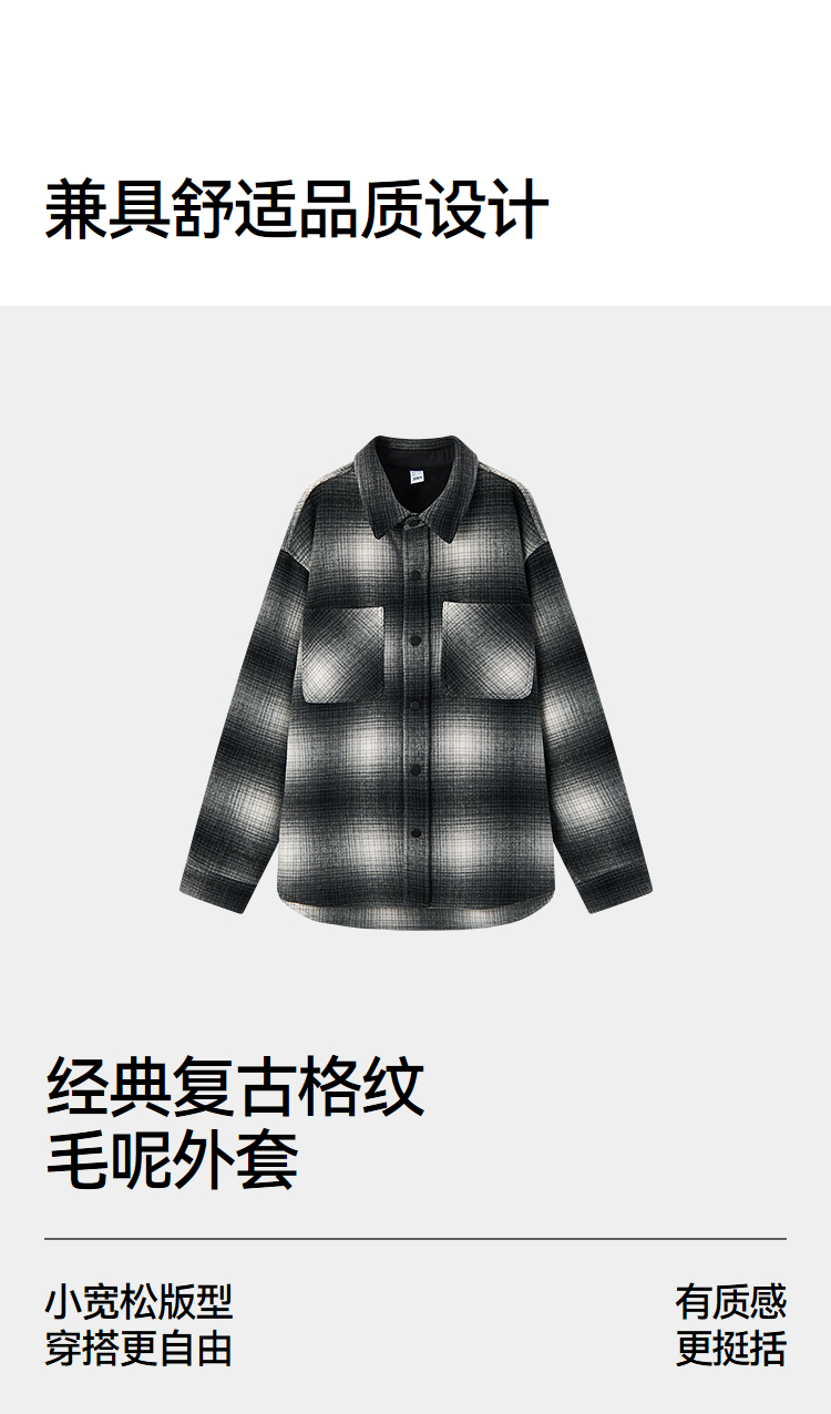 森马毛呢外套男冬季加绒格纹夹克经典复古百搭小宽松廓形翻领上衣